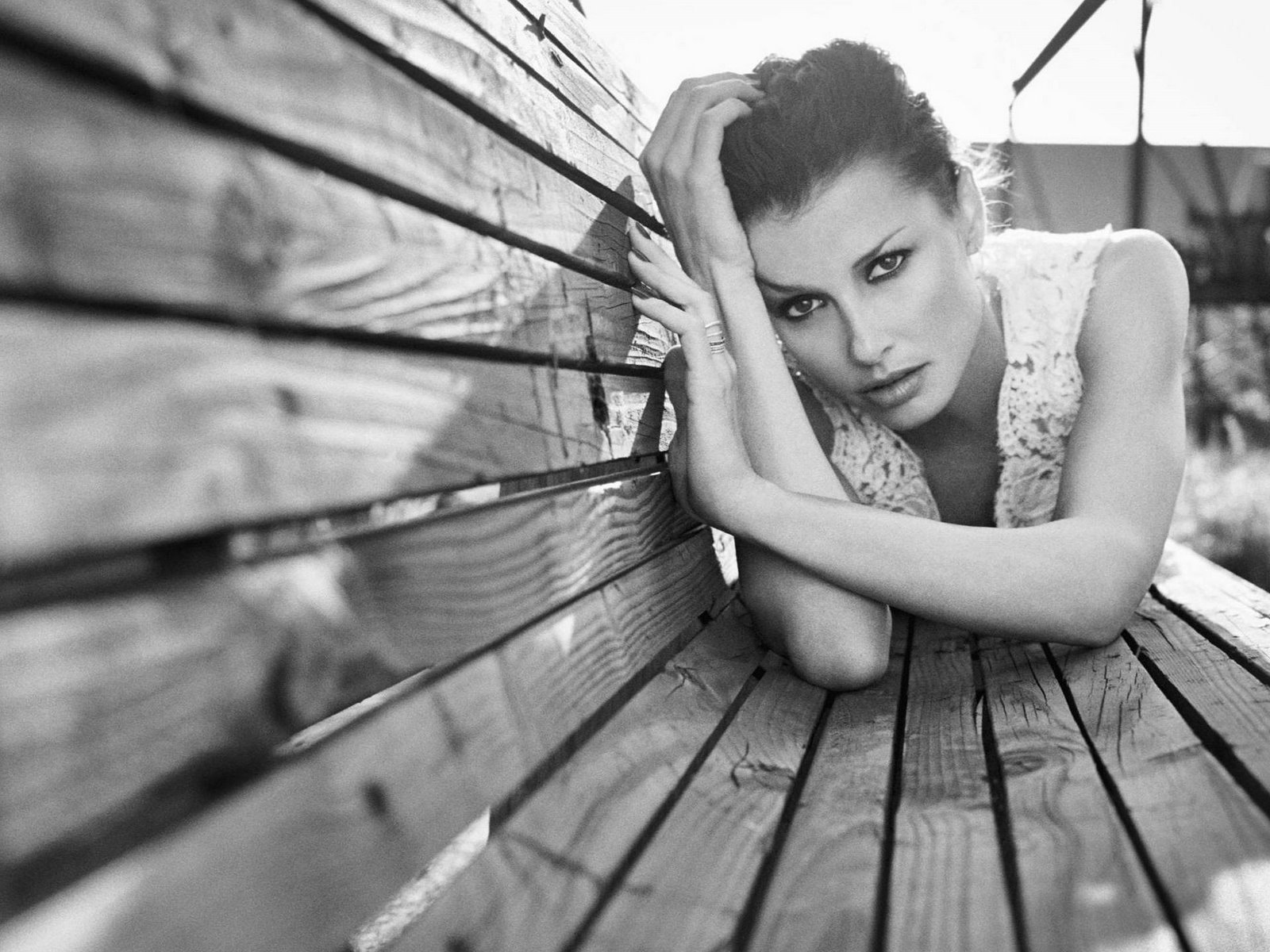 Imagen en blanco y negro de la muchacha en los bancosImagen en blanco y negro de la muchacha en los bancos