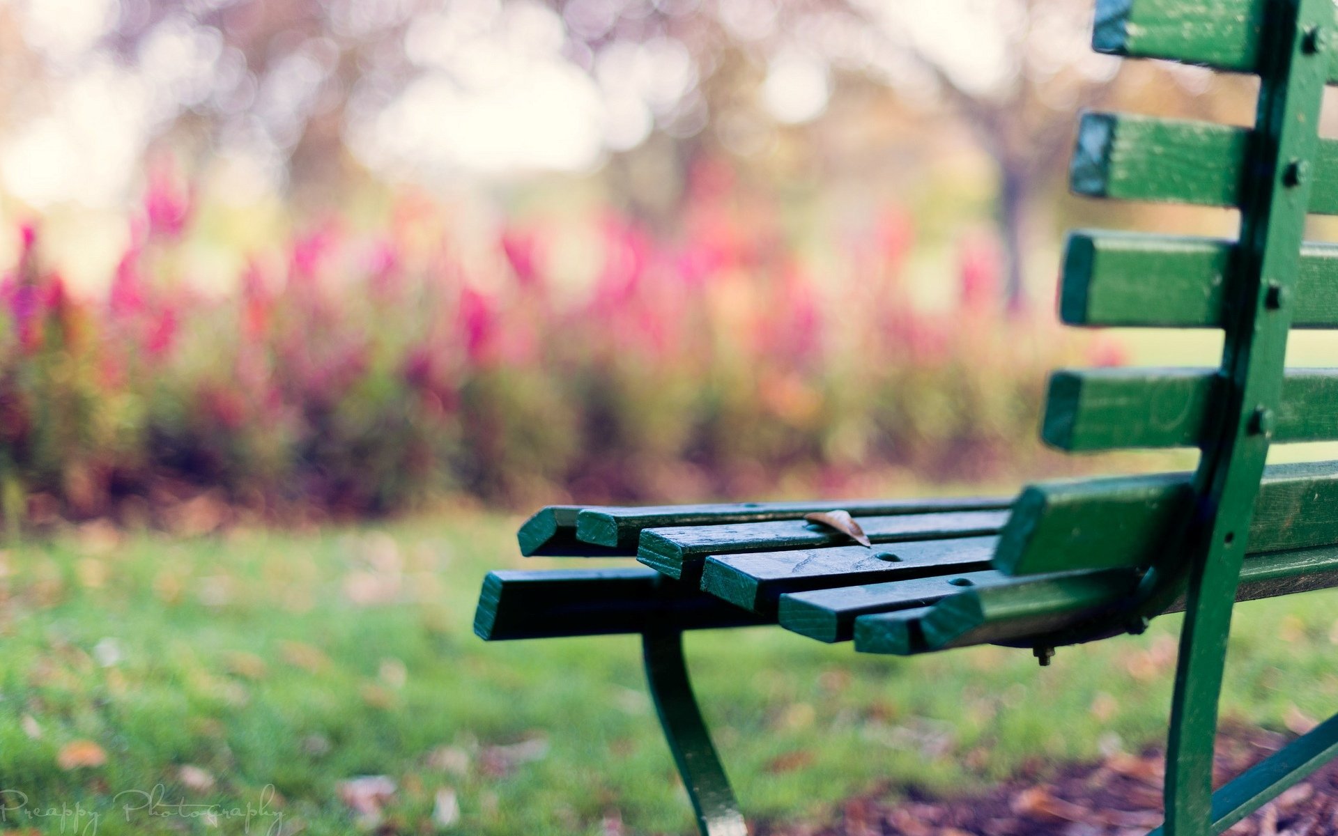 Foto de la naturaleza otoñal del parque de Alemania con linternas, árboles, banco