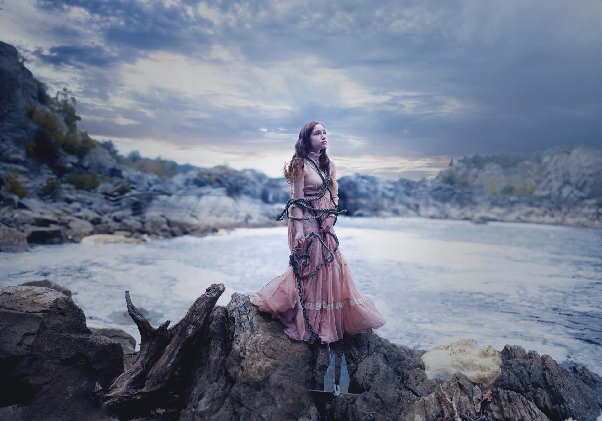 Personaje femenino del juego league of legends en el fondo de un estanque con floresPersonaje femenino del juego League of Legends en el fondo de un estanque con flores