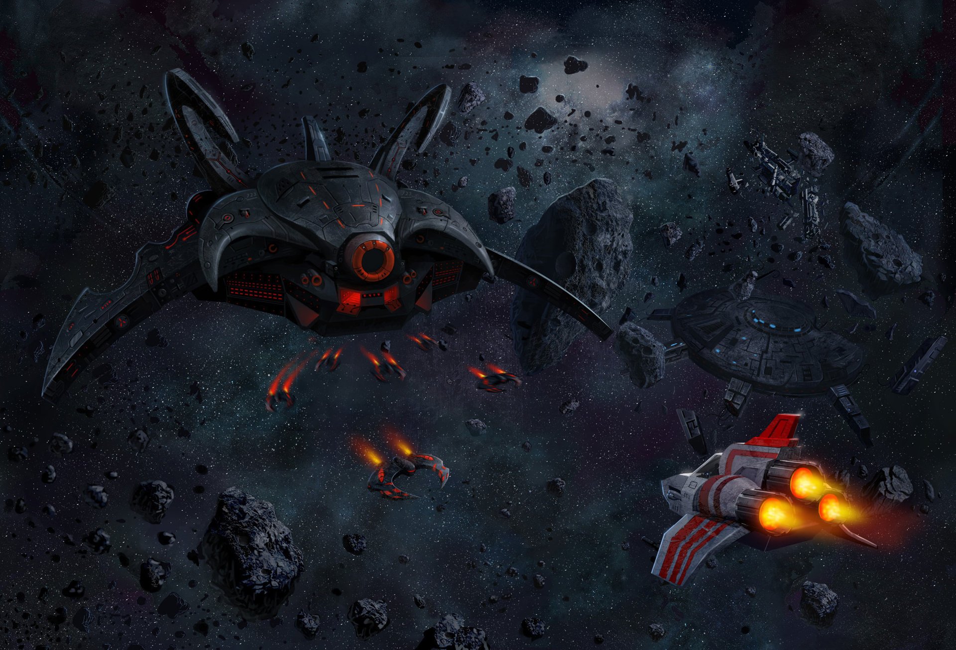 Ciencia ficción arte naves espaciales asteroides
