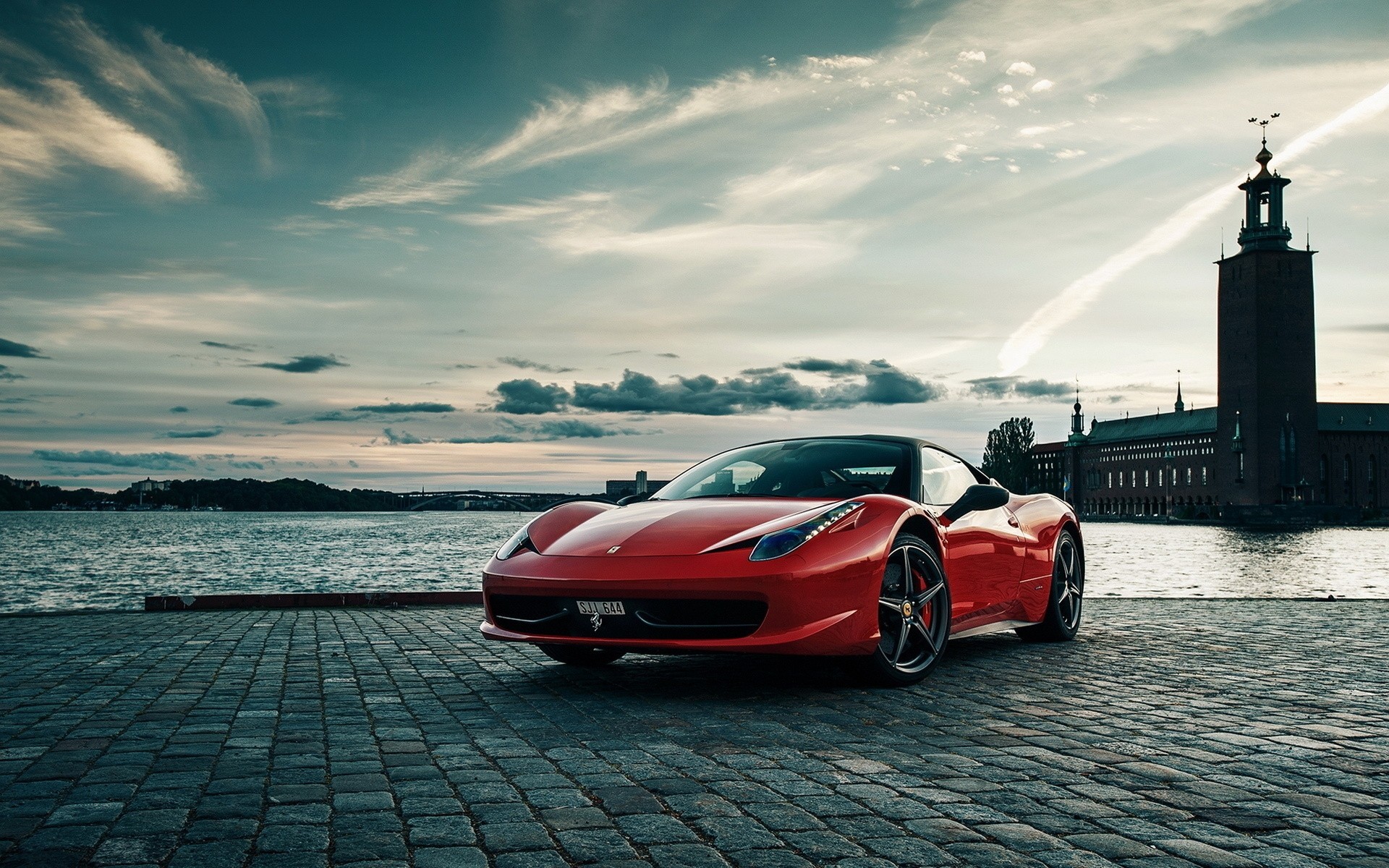 El coche negro de ferrari está parado en el jardínEl coche negro de Ferrari está parado en el Jardín