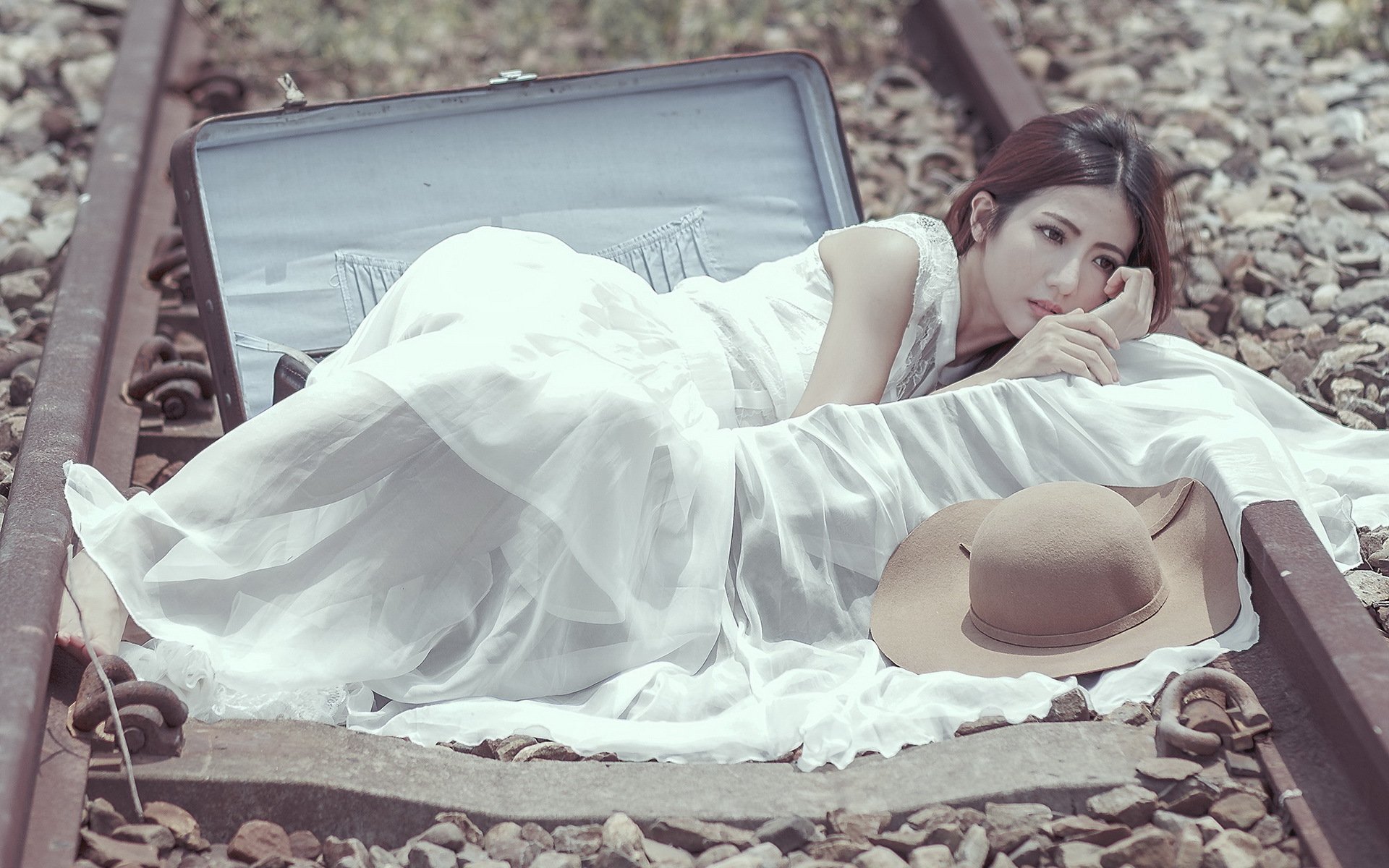 Chica de anime de pie con una bicicleta bajo la flor de cerezo