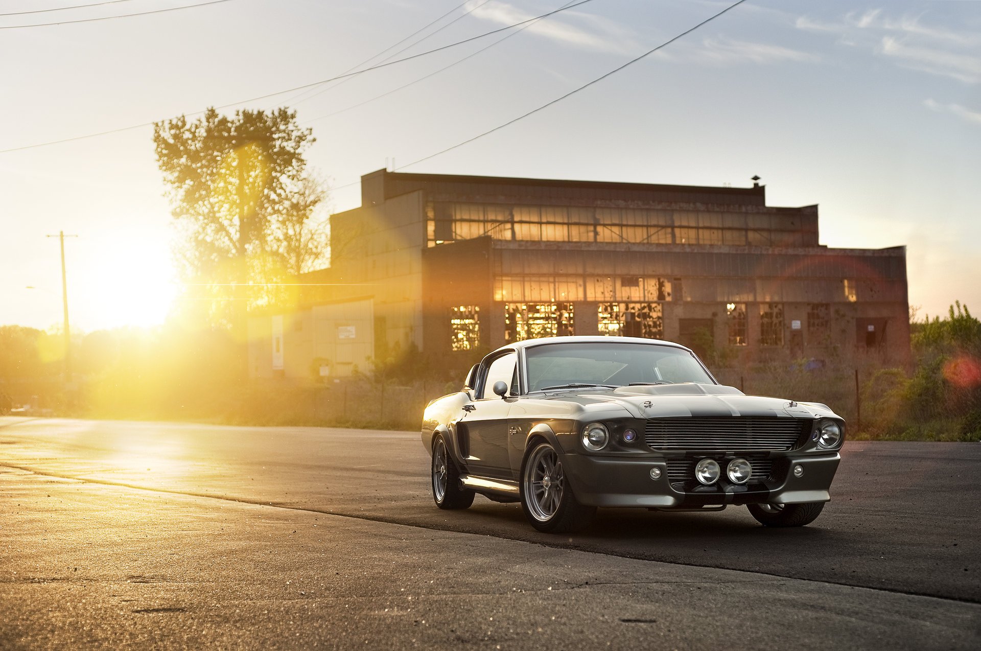 Ford plateado en el fondo de la puesta de sol