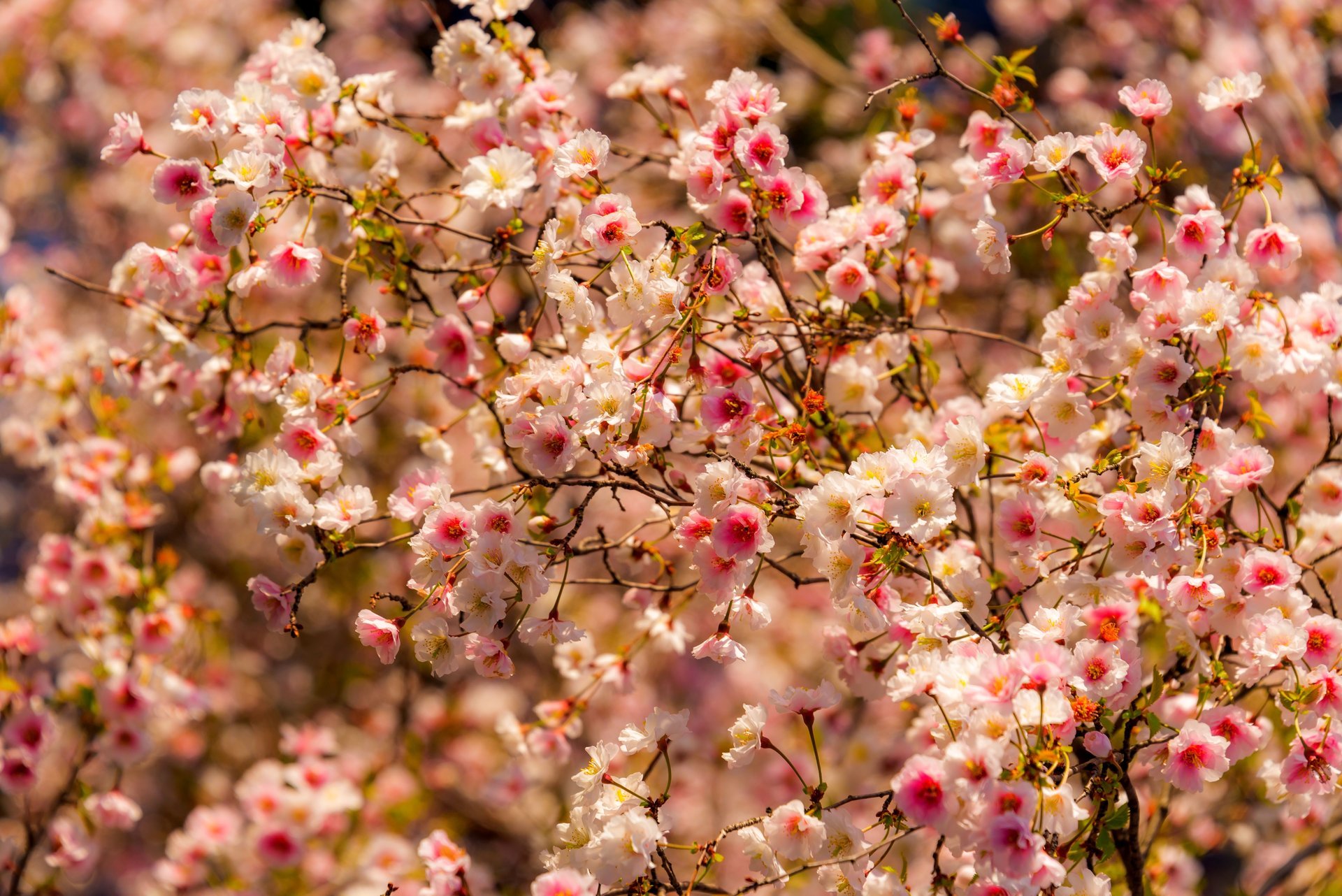Floreciendo flores de Sakura en el fondo del cielo azul de la primavera