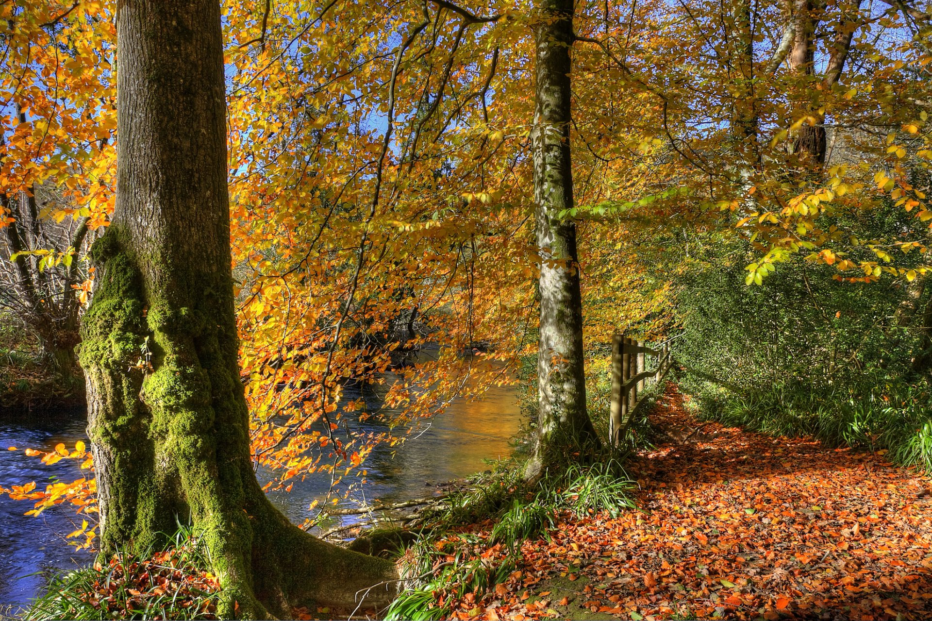 Bosque de otoño - árboles de musgo y follaje de oroBosque de otoño - árboles de musgo y follaje de oro