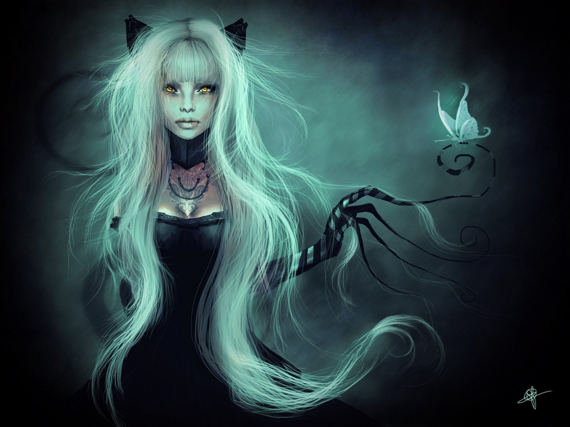 Chica vampiro en un fondo rojo con sangre en todo el cuerpo y los ojos ardientesChica vampiro en un fondo rojo con sangre en todo el cuerpo y los ojos ardientes