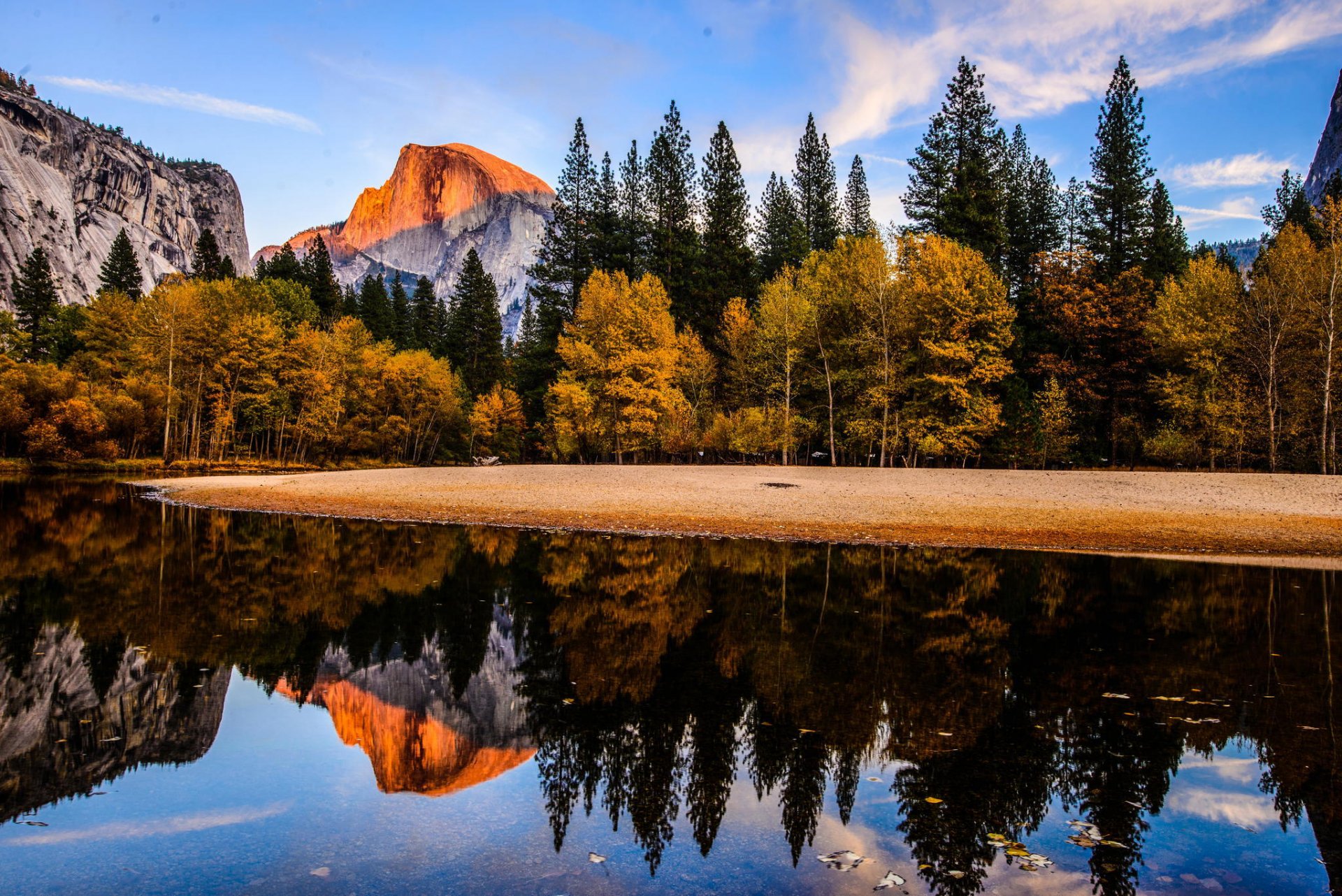 Dodge Challenger rojo en medio de un hermoso paisaje
