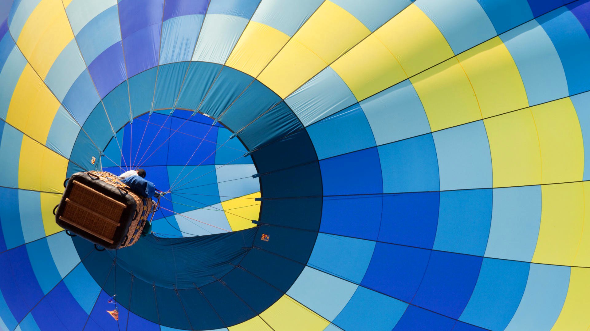 La bola multicolor despega con la gente en la canastaLa bola multicolor despega con la gente en la canasta