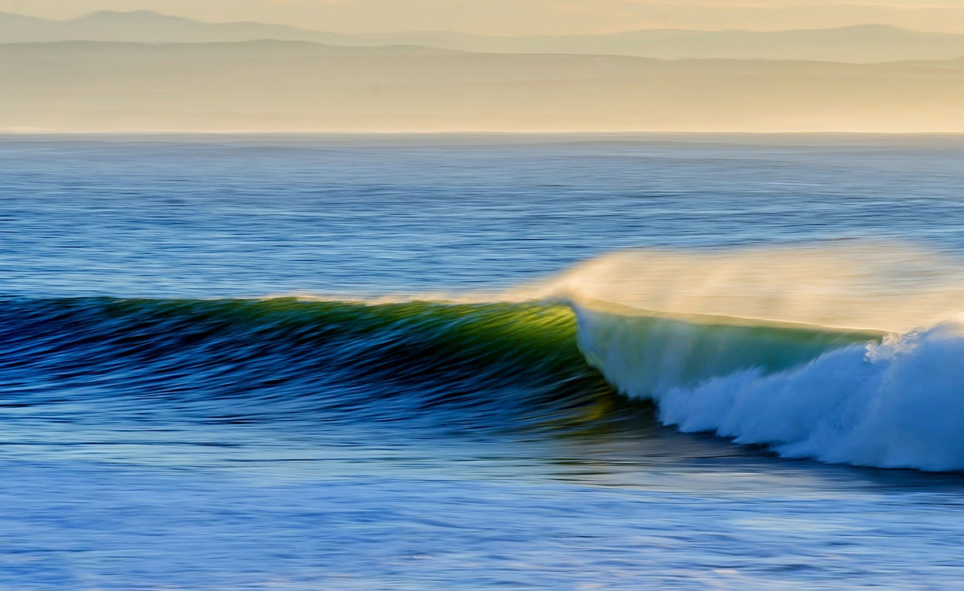 Eclipse sobre las olas y las montañas descenso de piedra rocosaEclipse sobre las olas y las montañas descenso de piedra rocosa