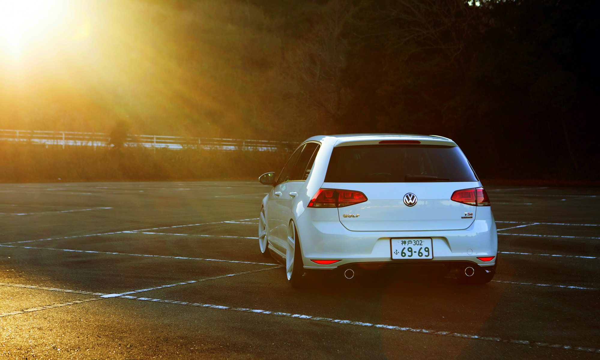 Volkswagen golf de color blanco en el fondo de la ciudad