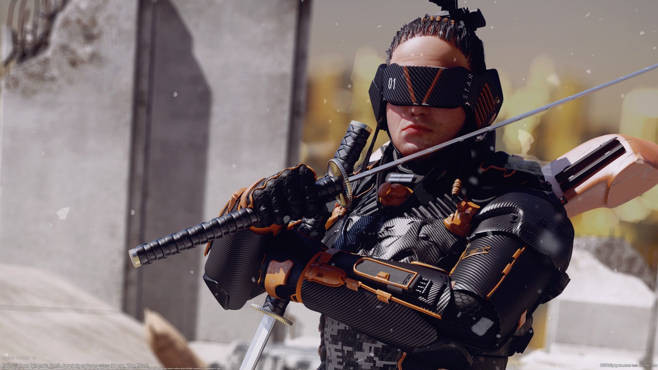 Guerrero Hasan bayramovich con espada y Katana