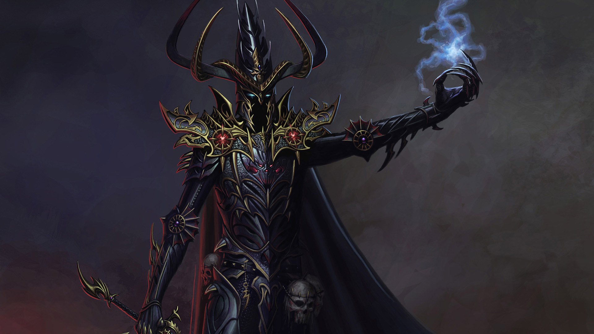 Un guerrero con una hermosa armadura sostiene un rayo sobre un fondo negroUn guerrero con una hermosa armadura sostiene un rayo sobre un fondo negro