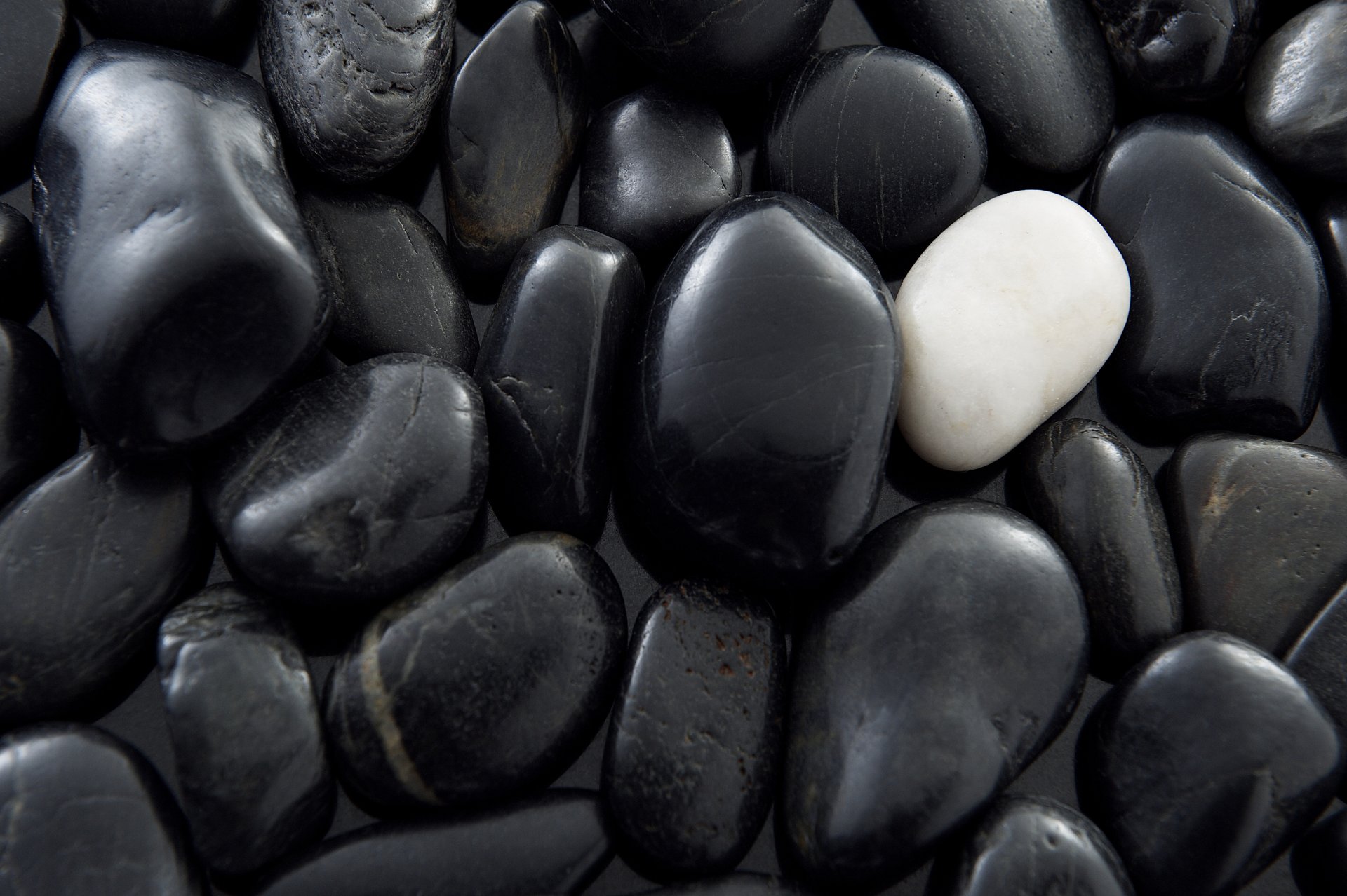 Guijarros de mar negro con piedra blanca