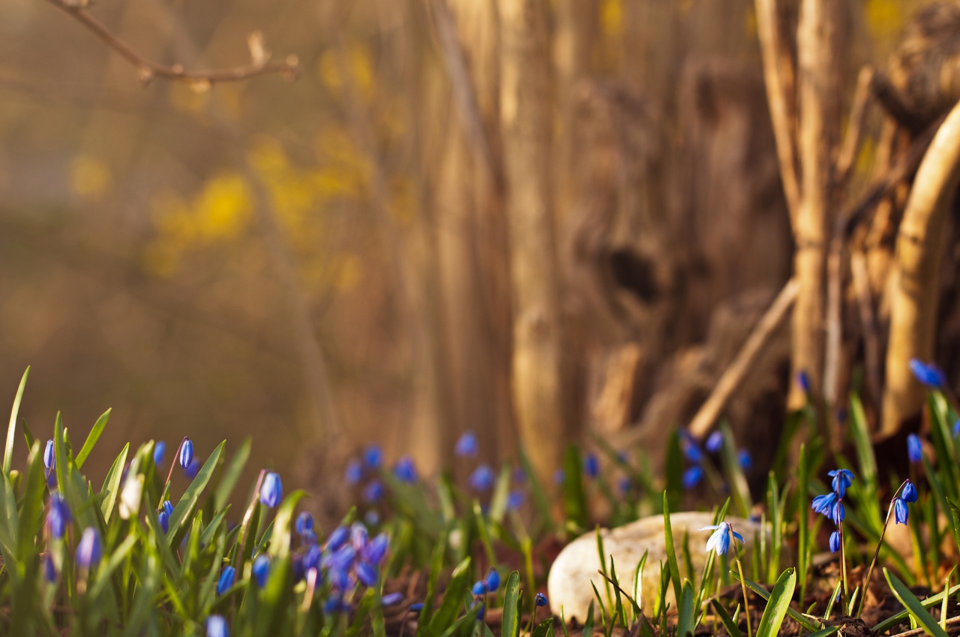 En la primavera en el bosque de campanillas de nieve azulEn la primavera en el bosque de campanillas de nieve azul