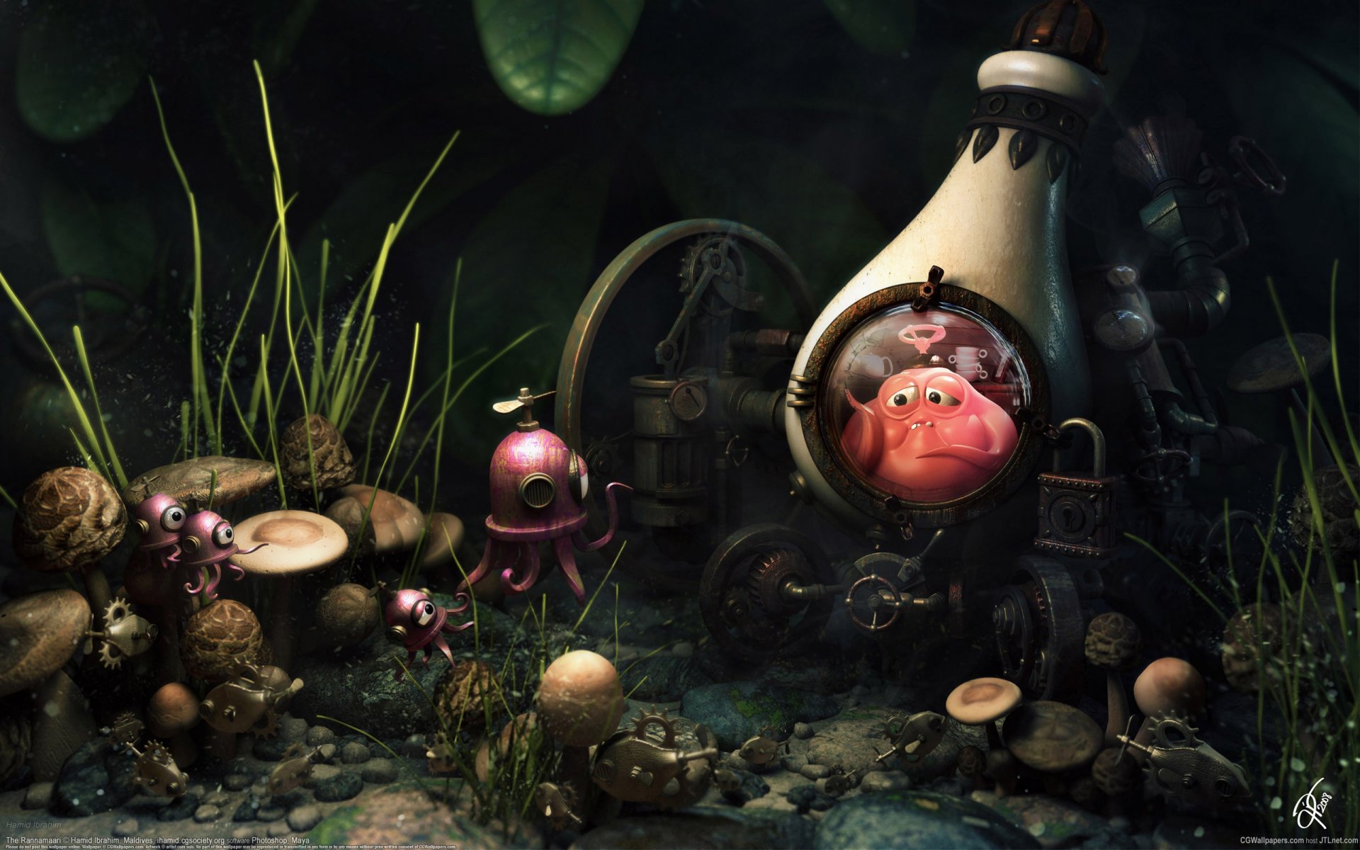 Mazmorra de cuento de hadas con hongos y alienígenas