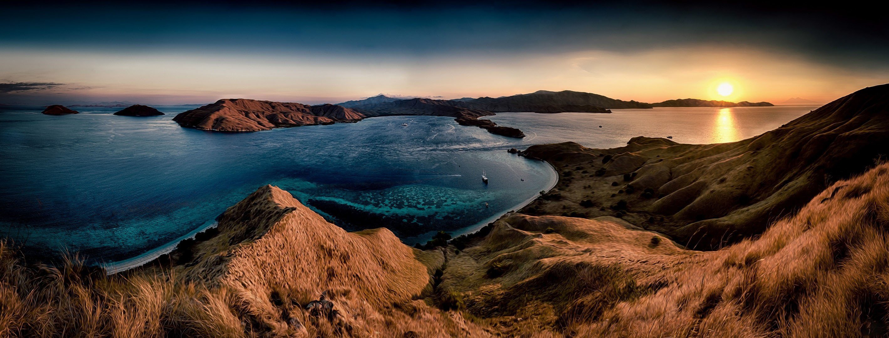Hermoso paisaje. Mar y arena. Hermosa puesta de sol. Goldengate