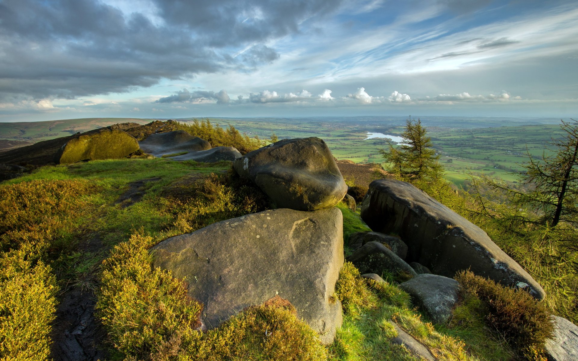 Amplio valle . cielo azul con nubes blancas como la nieveAmplio valle . Cielo azul con nubes blancas como la nieve