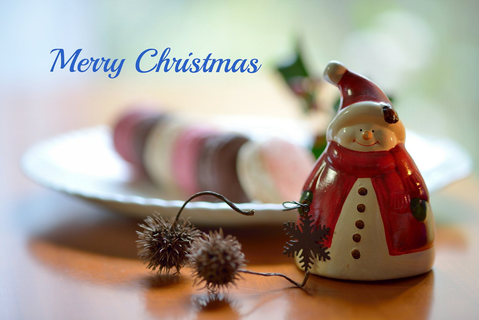 Muñeco de nieve con renos cerca del árbol de navidadMuñeco de nieve con renos cerca del árbol de Navidad