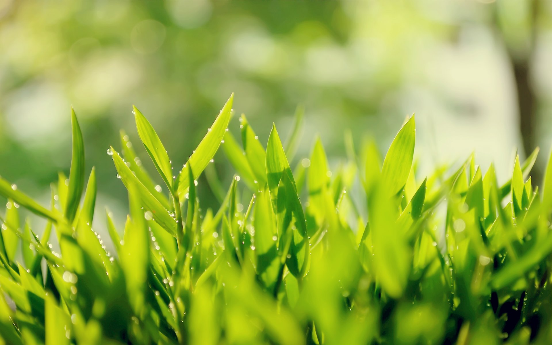 Hojas de té verde con gotas de rocío