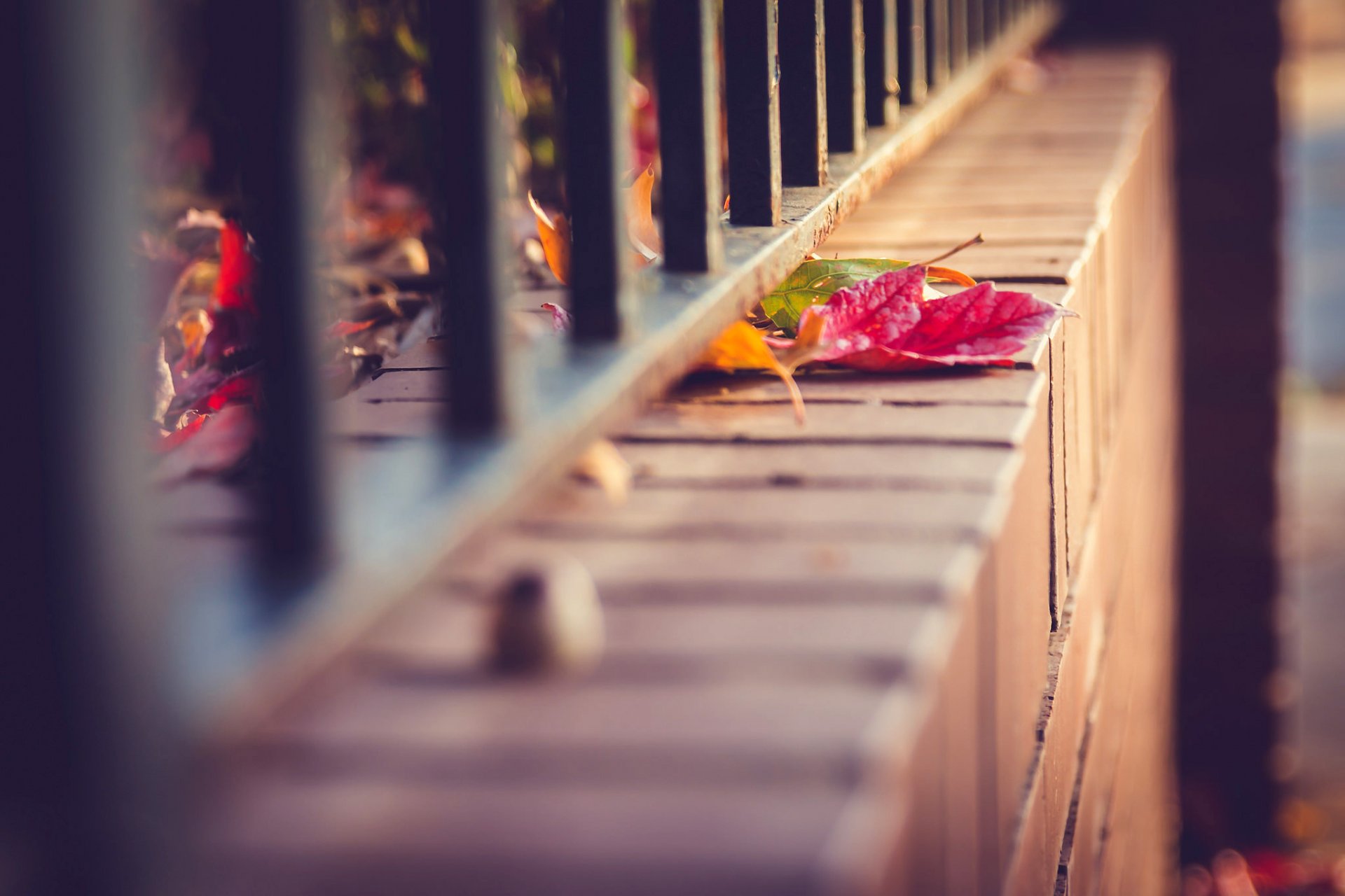 Hojas de otoño en la cerca macro tiro