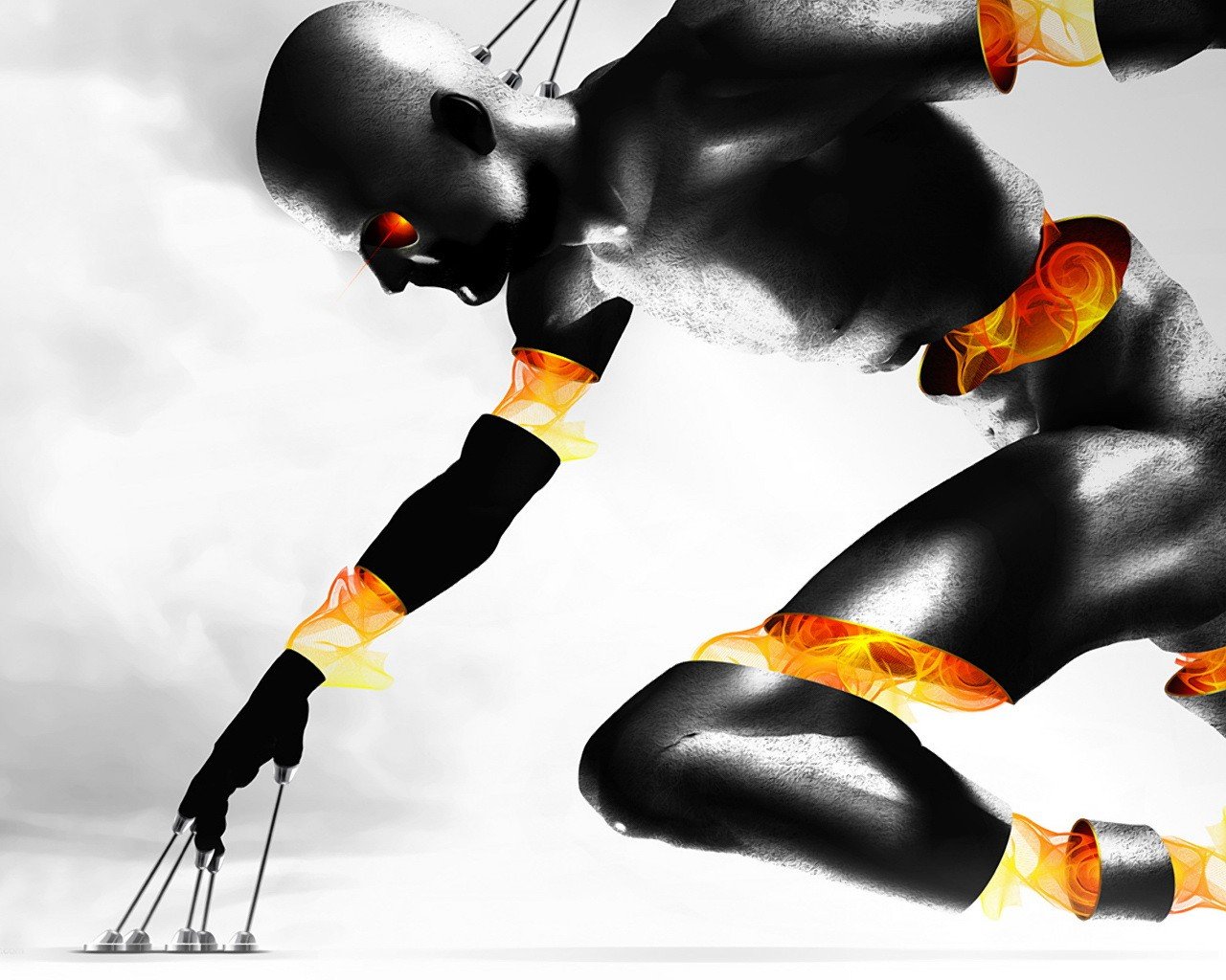 Abstracción en forma de un hombre pensativo sobre un fondo azulAbstracción en forma de un hombre pensativo sobre un fondo azul