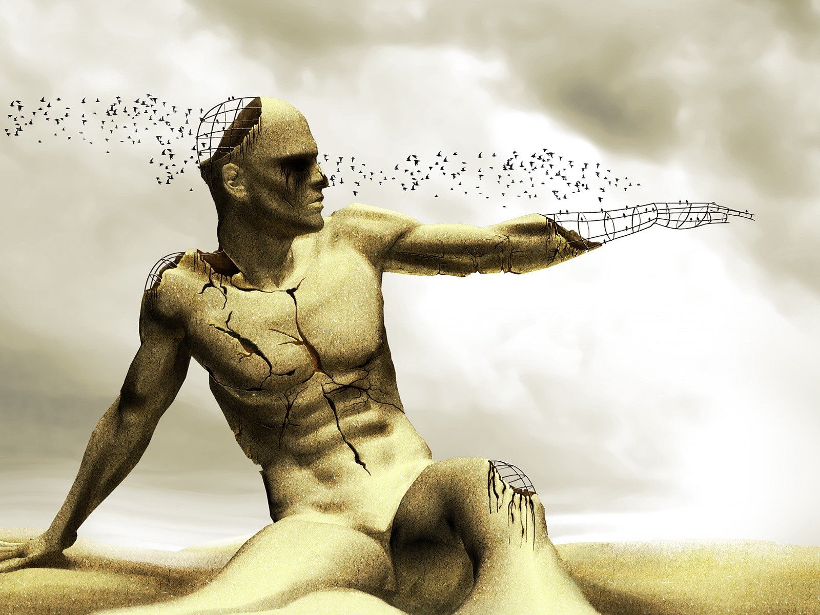 Cascada que fluye sobre el fondo de las hojas de colores otoñales