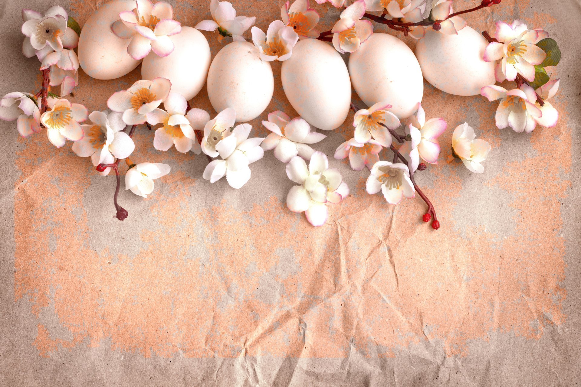 La hierba verde tiene huevos de pascua y flores bajo el solLa hierba verde tiene huevos de Pascua y flores bajo el sol
