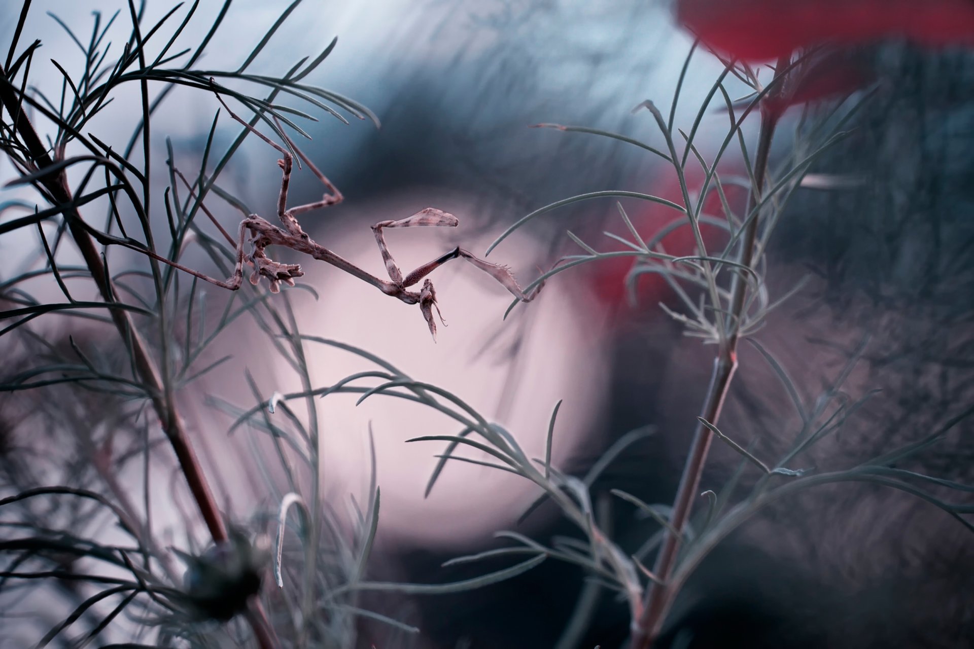 Insectos divertidos en una rama de una planta
