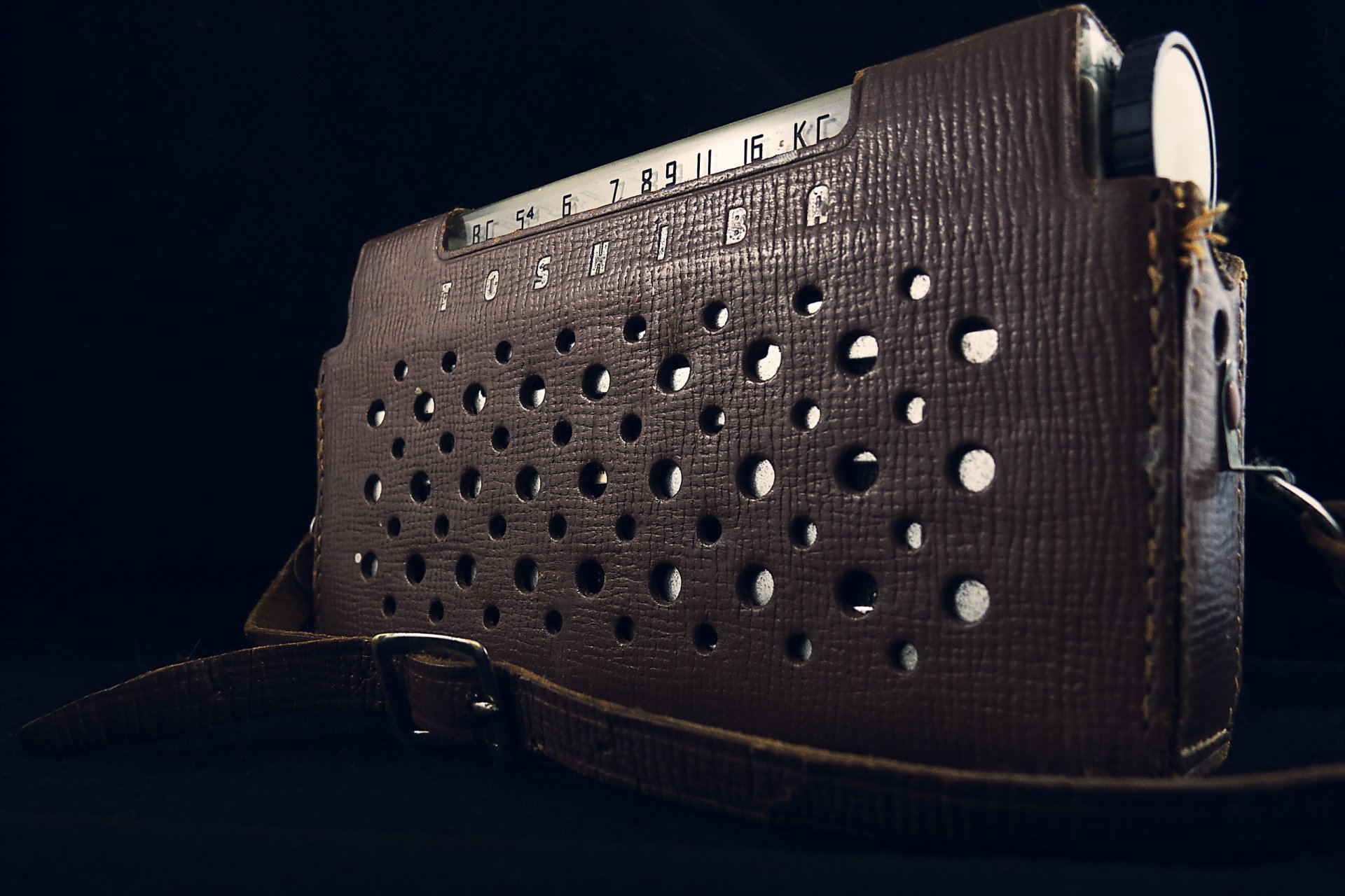 Una cámara inusual se encuentra en una funda de papelUna cámara inusual se encuentra en una funda de papel