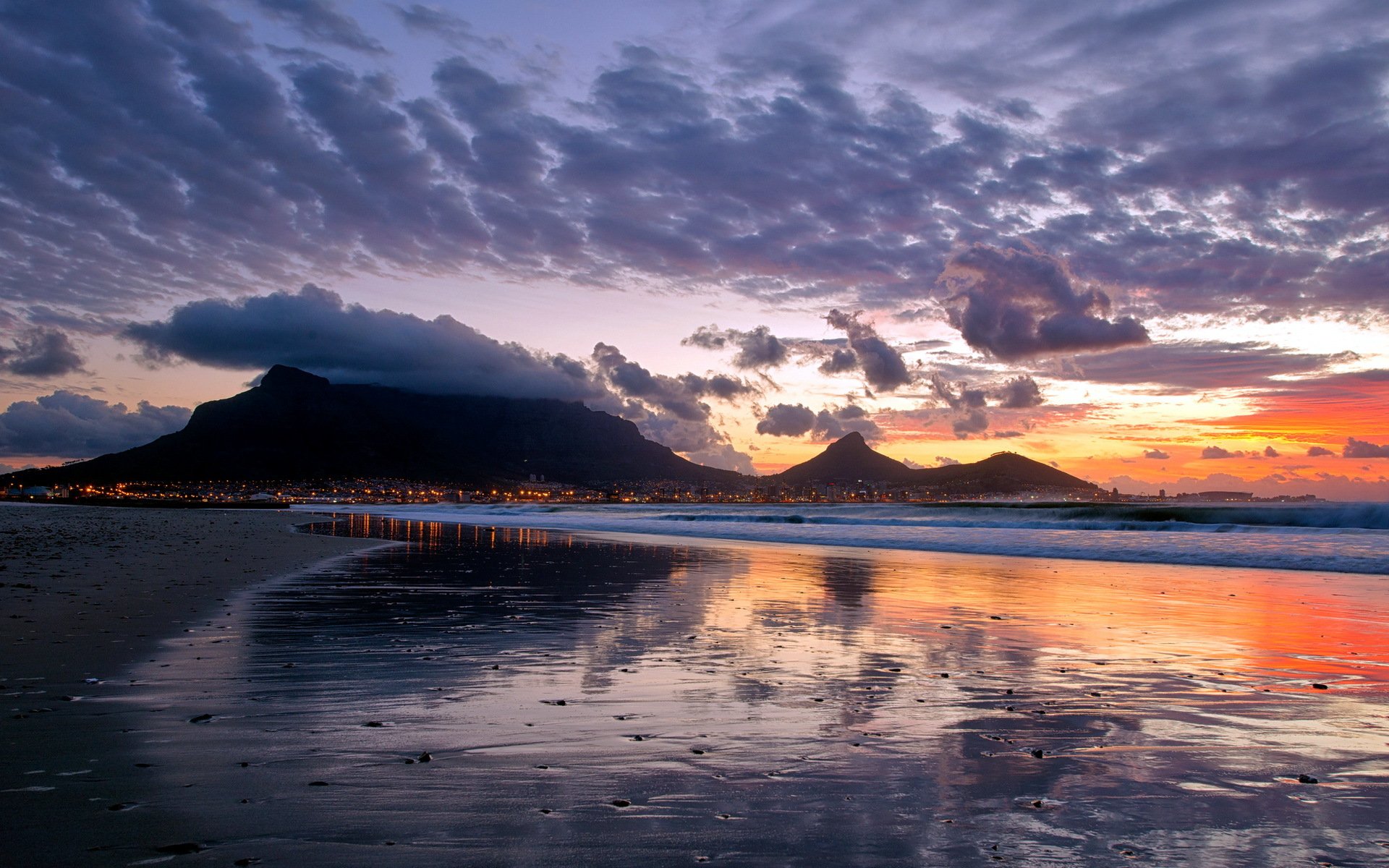 Ominosa puesta de sol. Las nubes se reflejan en el mar