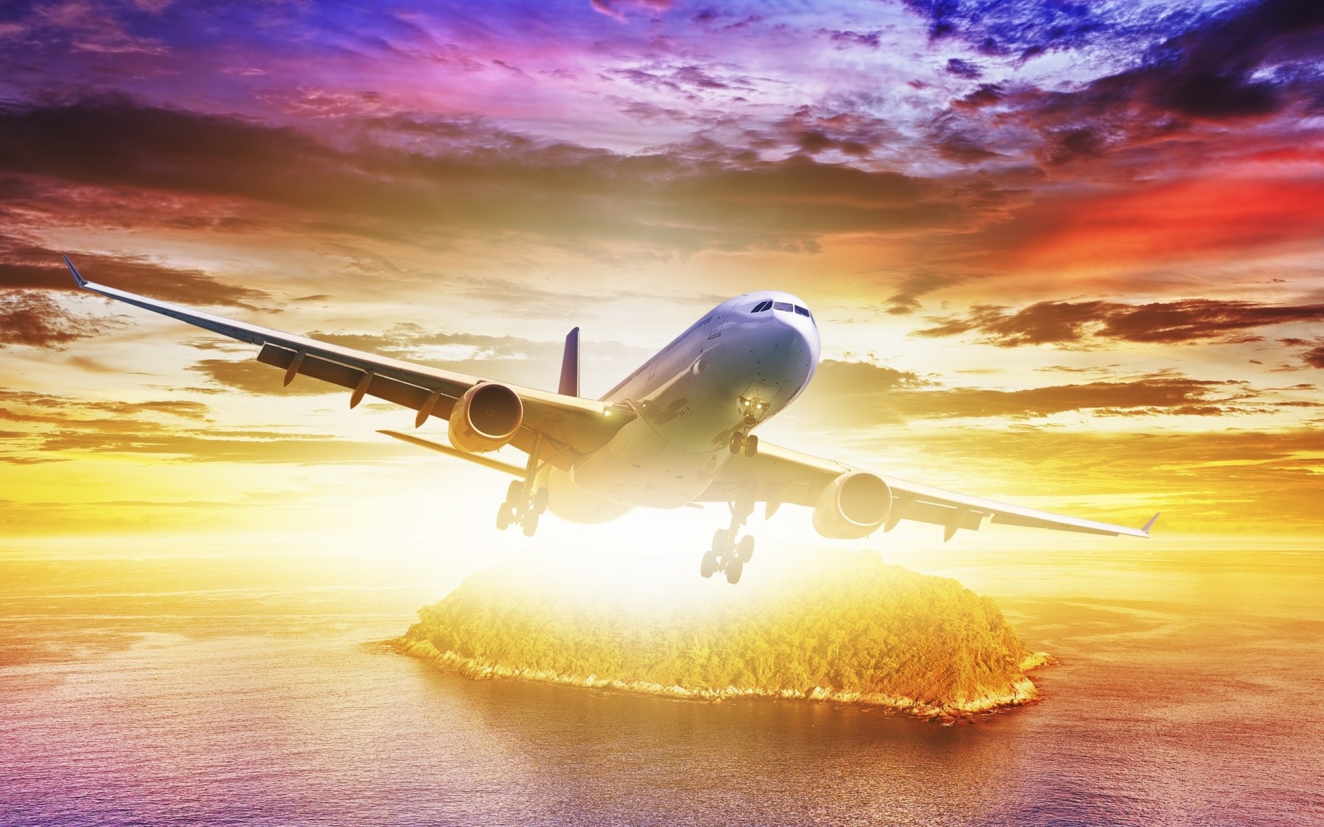 Sobre un fondo azul, una isla con un árbol y un mesSobre un fondo azul, una isla con un árbol y un mes