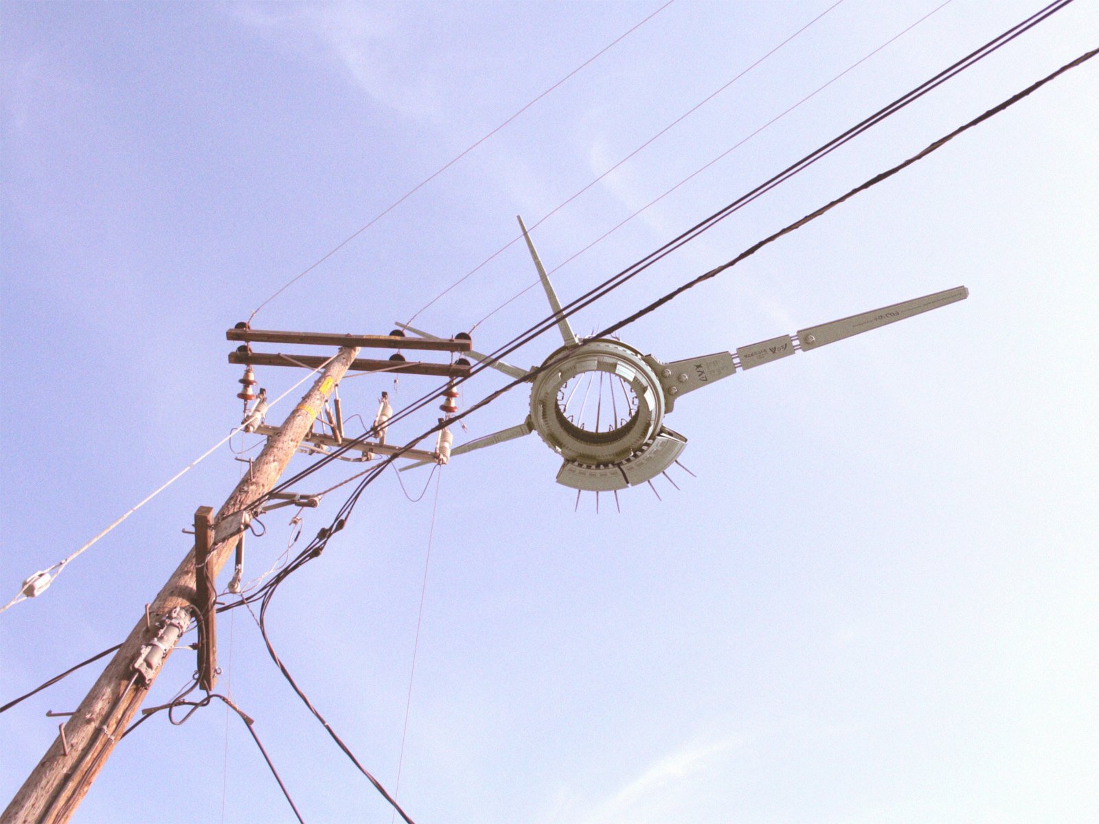 Ovni flotando sobre una hermosa ciudad en las montañasOVNI flotando sobre una hermosa ciudad en las montañas