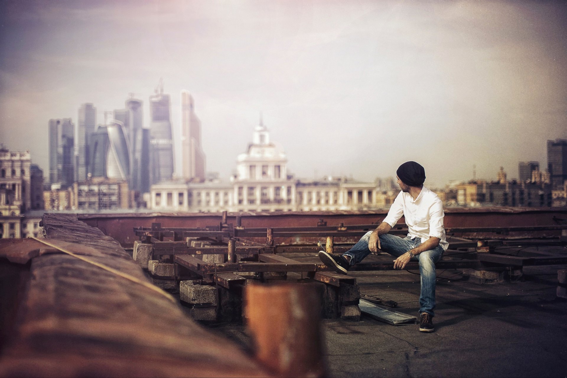 Karen abramian foto en la azotea con vista a la ciudad