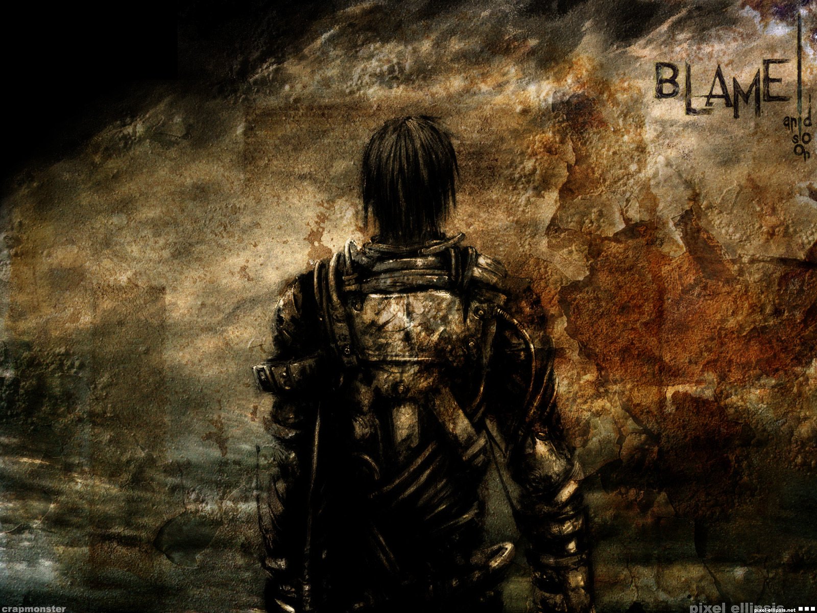 El chico del anime Blame está de espaldas