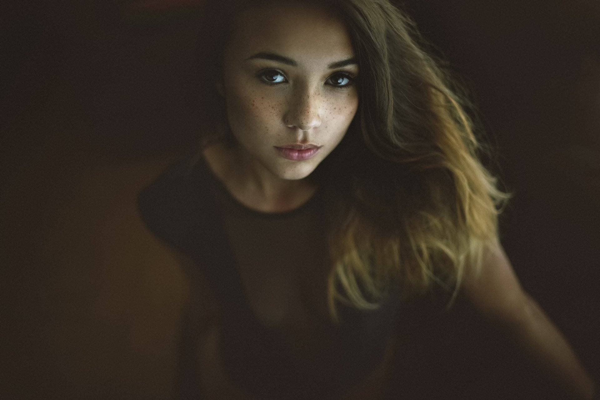 La cara de una chica de piel oscura en el fondo de los picos nevados de las montañasLa cara de una chica de piel oscura en el fondo de los picos nevados de las montañas