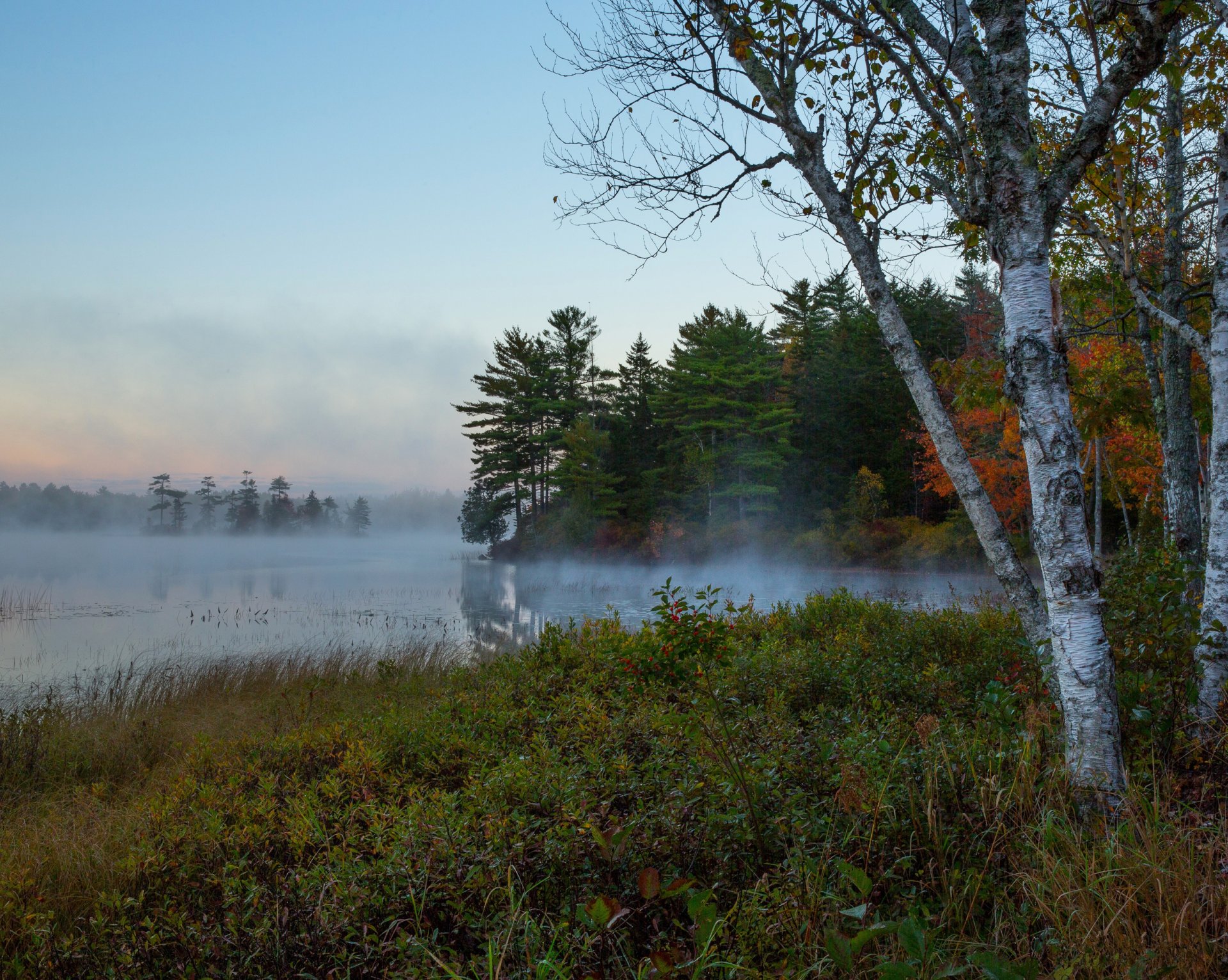 Un estrecho puente en la niebla que conduce a la distanciaUn estrecho puente en la niebla que conduce a la distancia