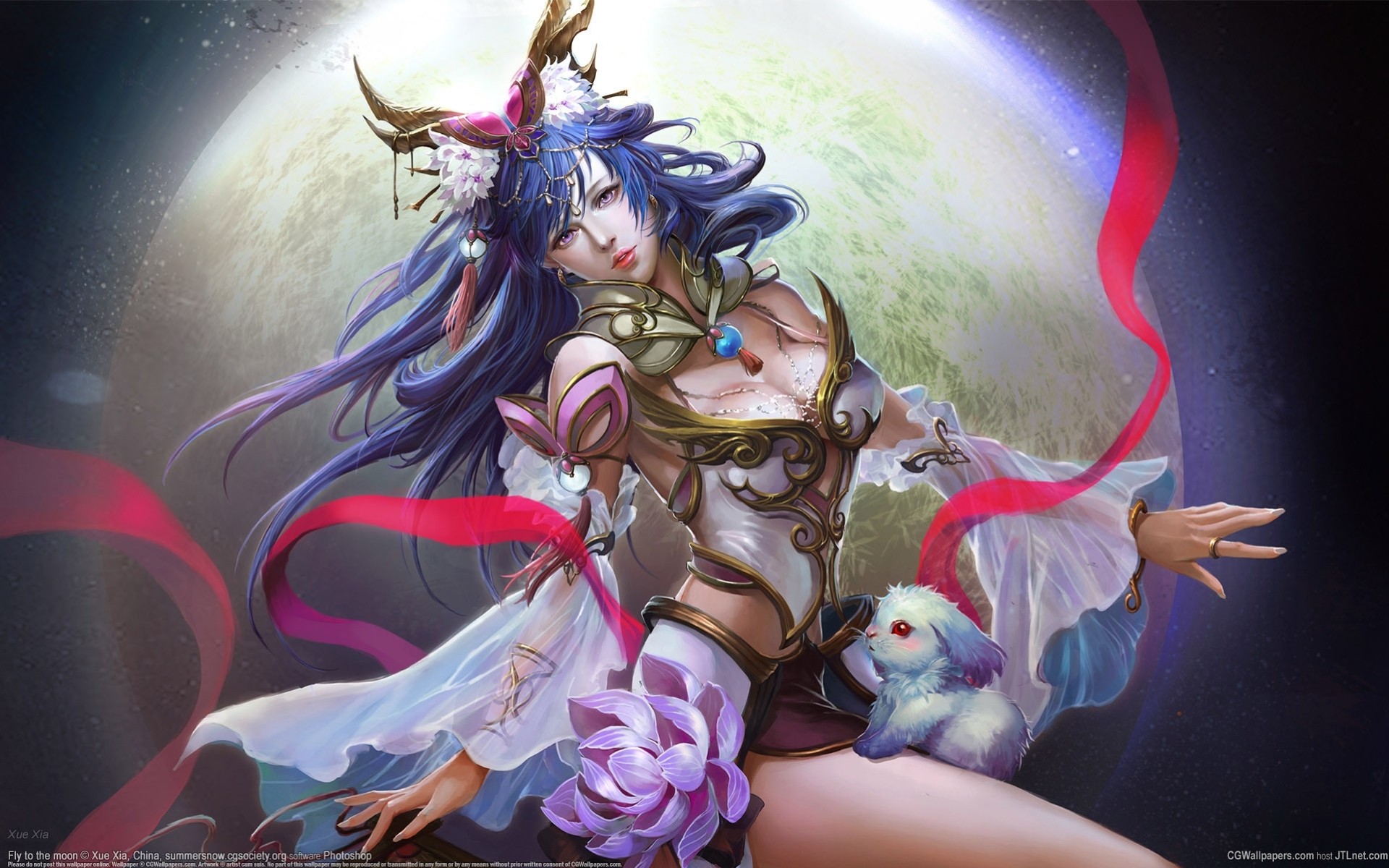 Chica personaje de anime con alas en el fondo de la lunaChica personaje de anime con alas en el fondo de la Luna