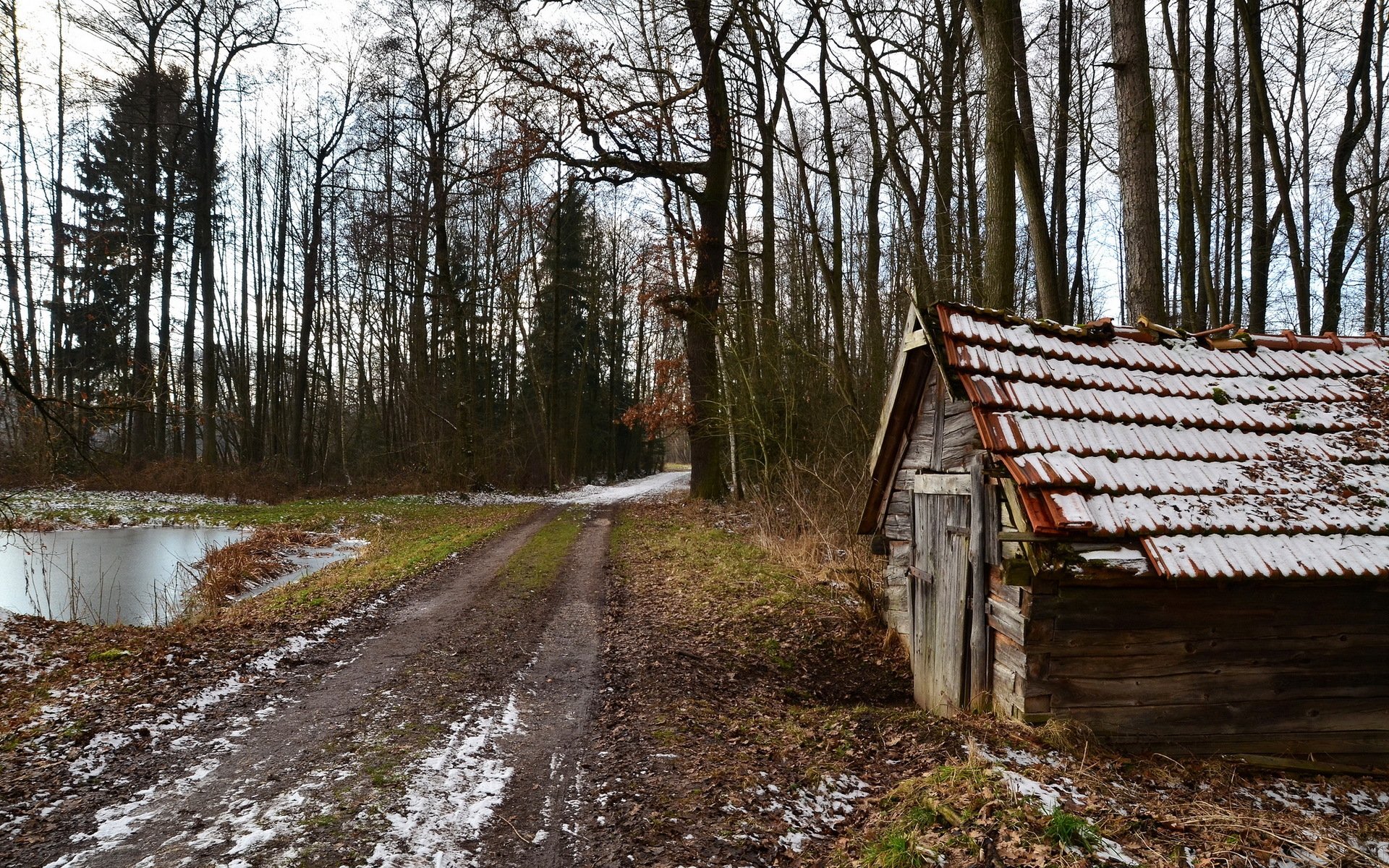 El camino a través del bosque se encuentra a través de los árboles y el ríoEl camino a través del bosque se encuentra a través de los árboles y el río