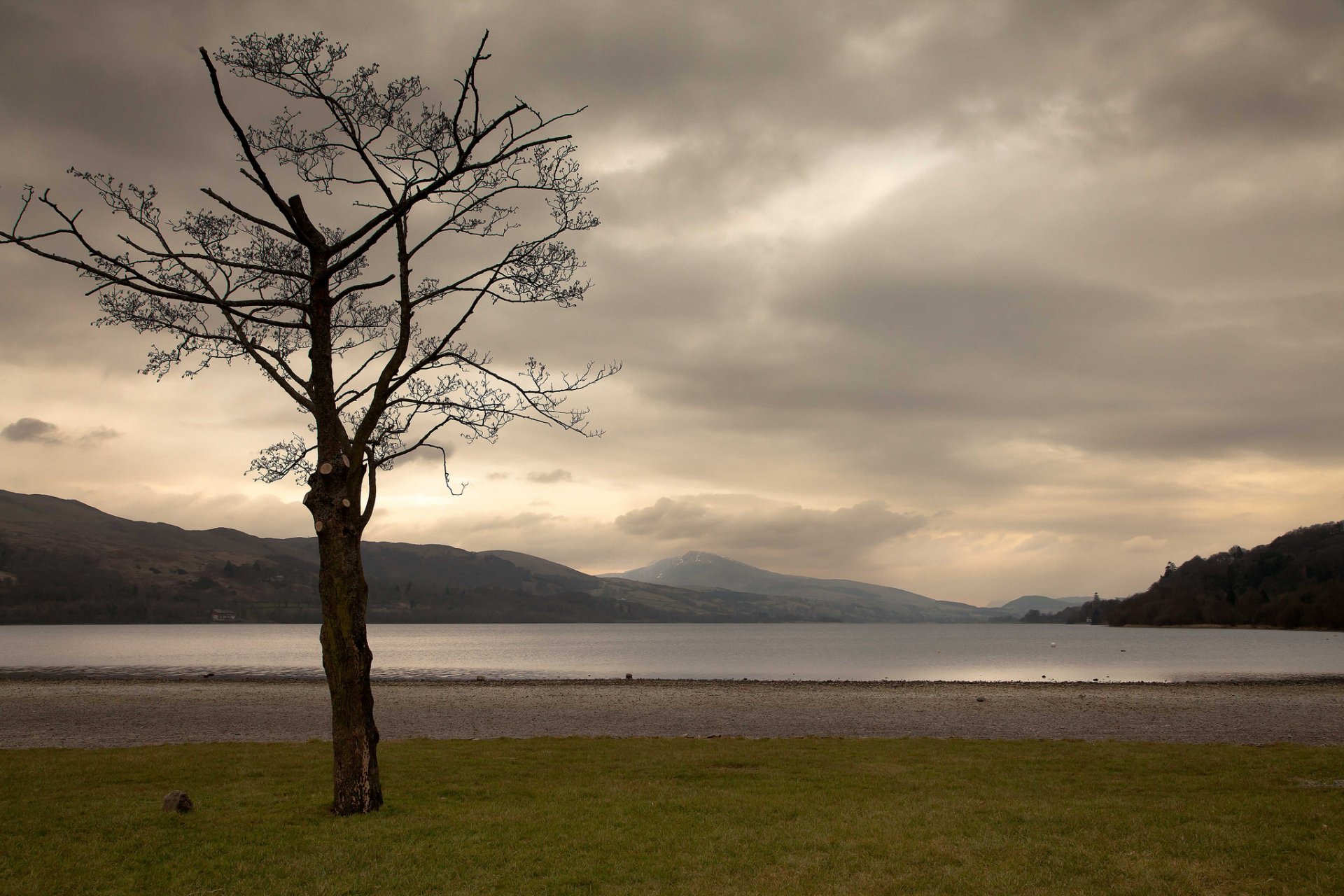 Un árbol solitario en un campo bajo una puesta de sol de inviernoUn árbol solitario en un campo bajo una puesta de sol de invierno