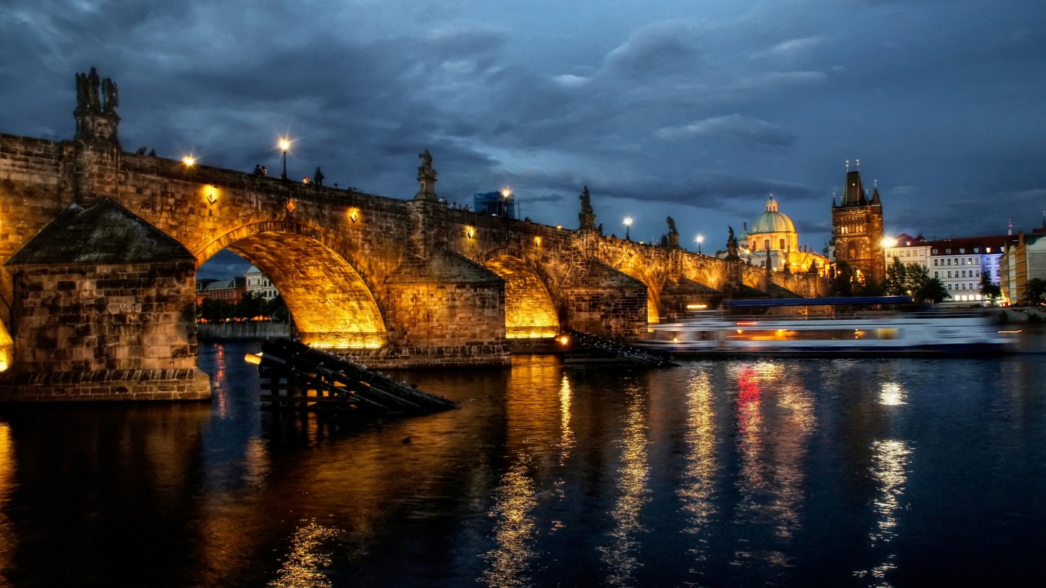 Las luces de la ciudad nocturna se reflejan en el ríoLas luces de la ciudad nocturna se reflejan en el río