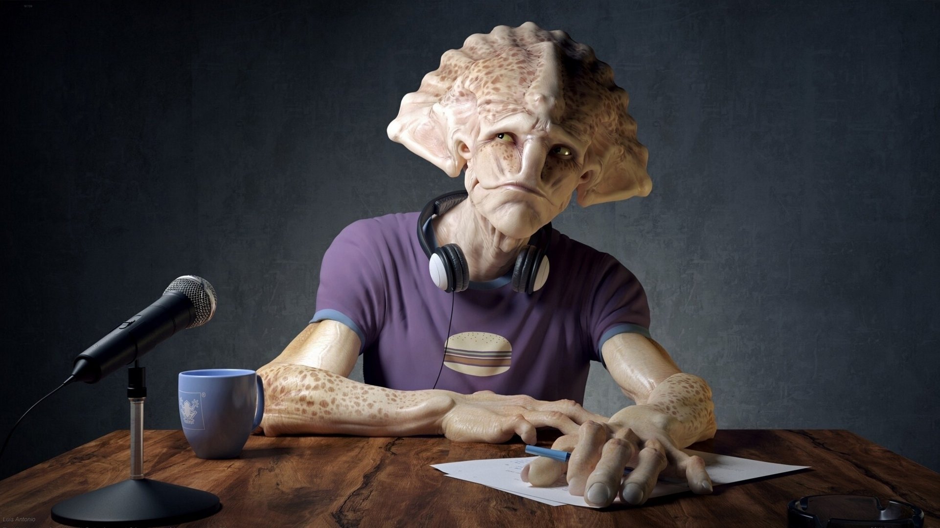 El extraterrestre luis antonio reflexiona sobre una hoja de papelEl extraterrestre Luis Antonio reflexiona sobre una hoja de papel