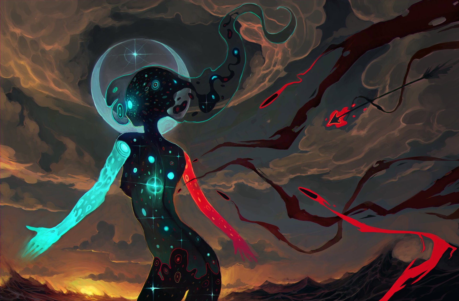 Paisaje de la luna sobre las nubes en tonos azulesPaisaje de la Luna sobre las nubes en tonos azules