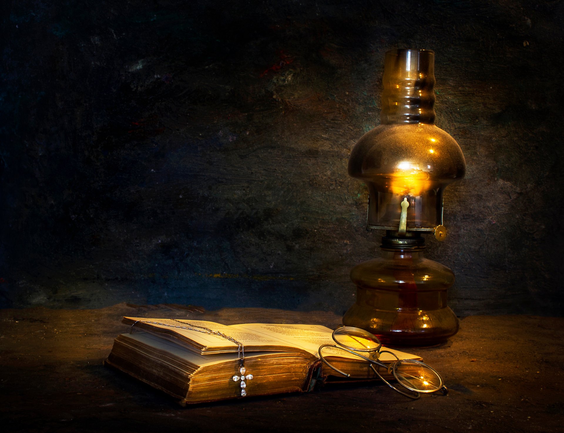 Libro, cruz y lámpara todo listo para el lunes de pascua
