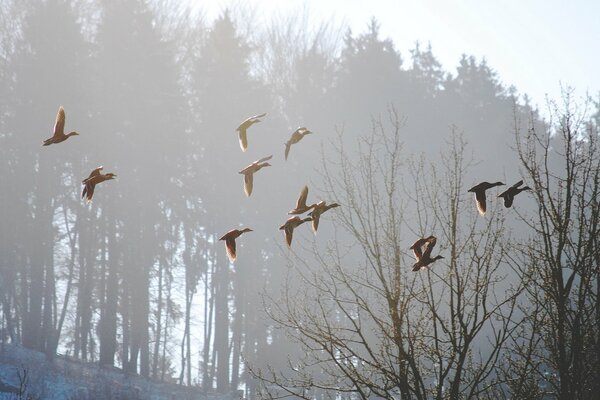 Bruma de la mañana después de la lluvia en el bosque