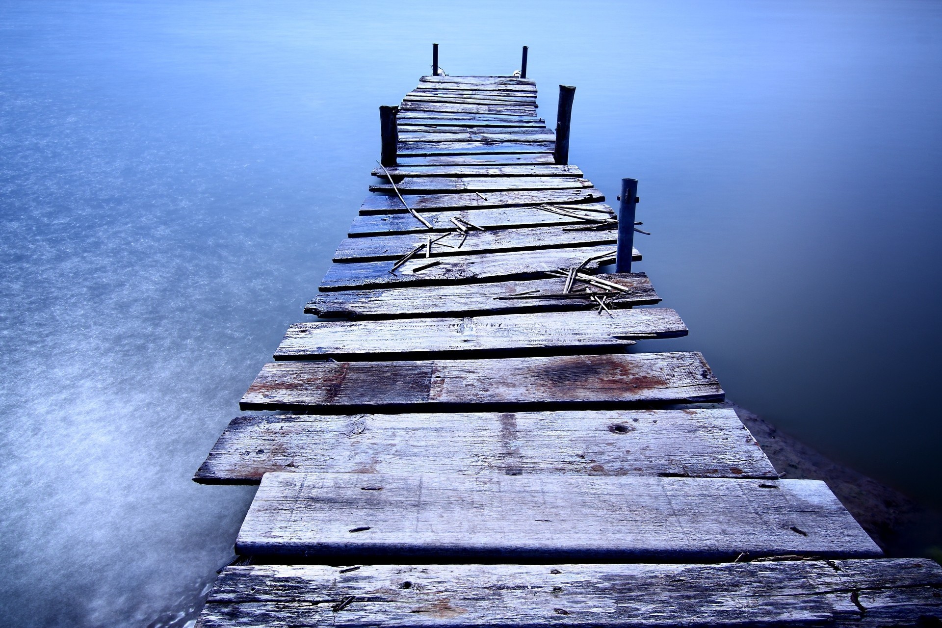 Muelle cerca del agua con un puente de madera. juego