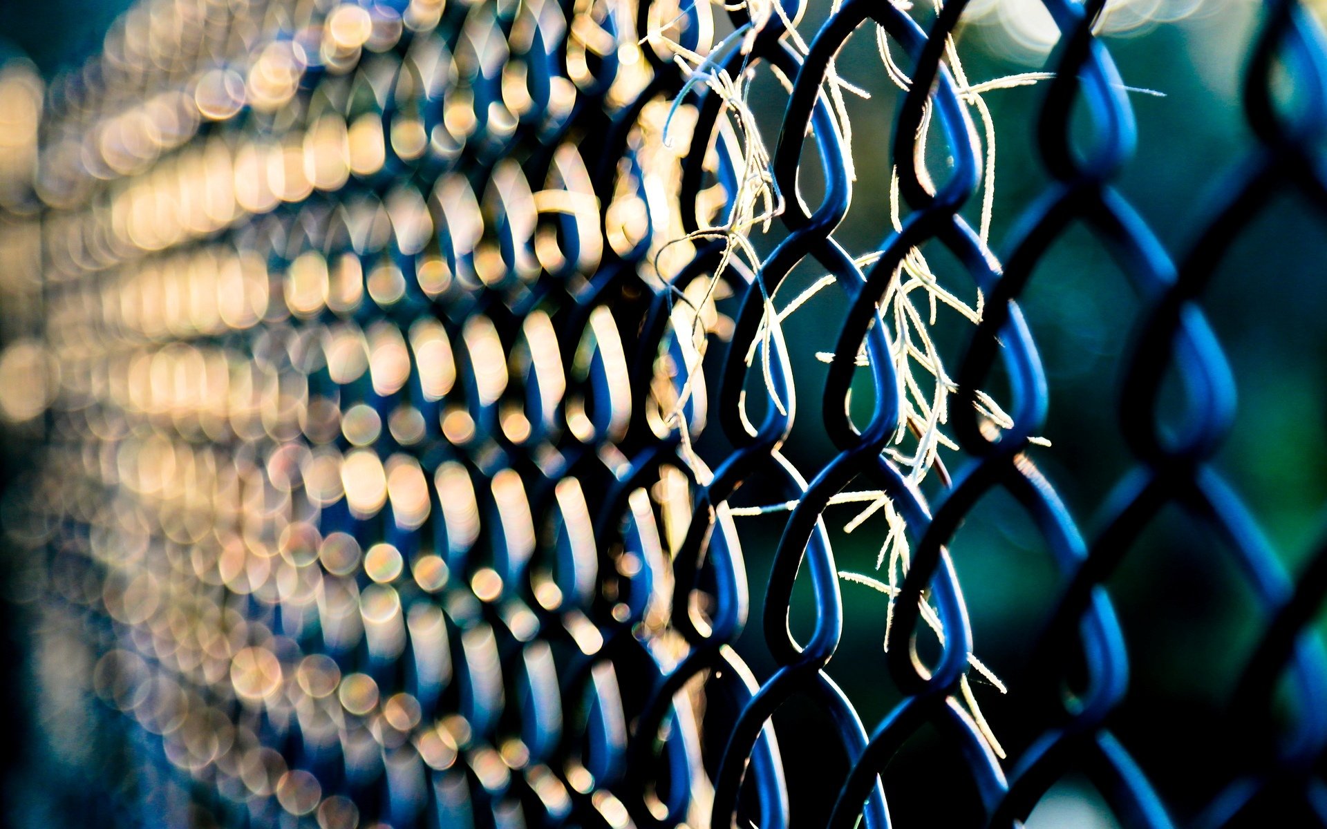 Cerca de malla de metal con luces de color naranja de las linternasCerca de malla de metal con luces de color naranja de las linternas