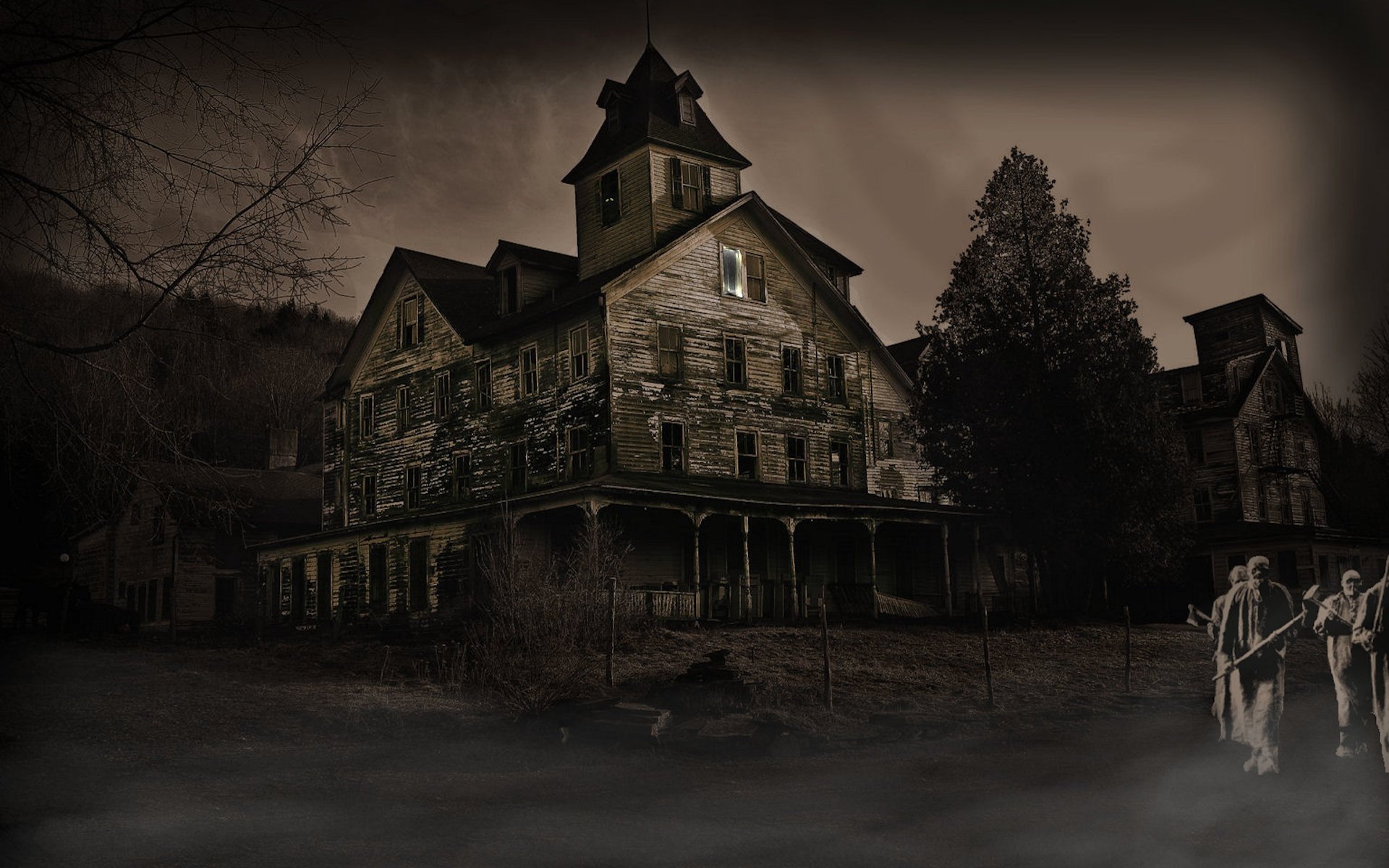 Casa antigua abandonada en la oscuridad con fantasmasCasa antigua abandonada en la oscuridad con fantasmas