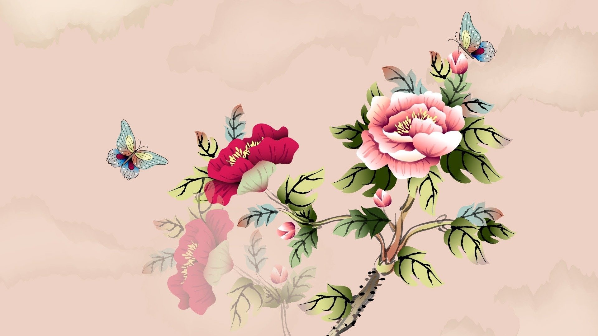 Minimalismo, mariposa de dibujos animados con floresMinimalismo, mariposa de dibujos animados con flores