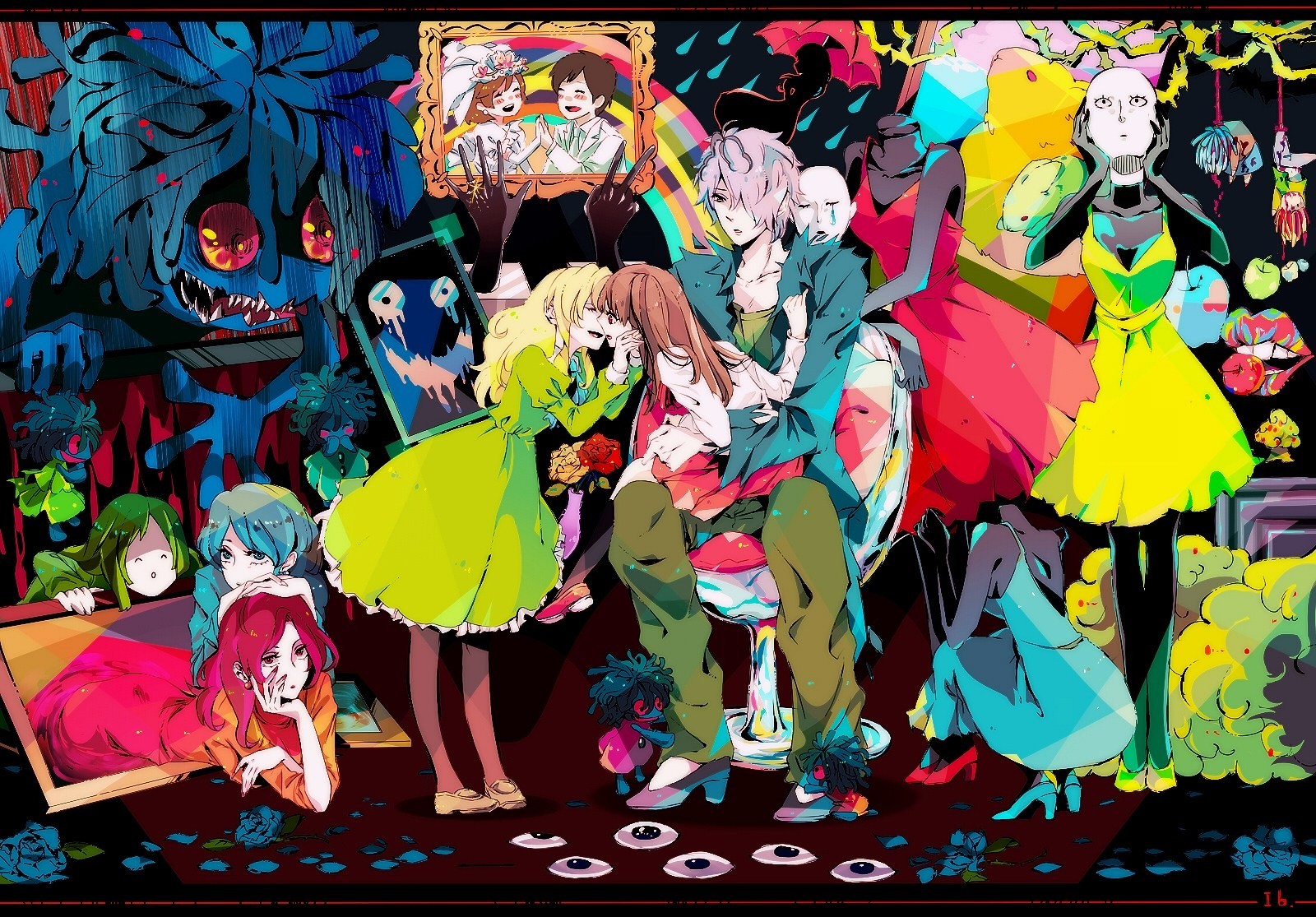 Chicas animadas con pelo multicolor