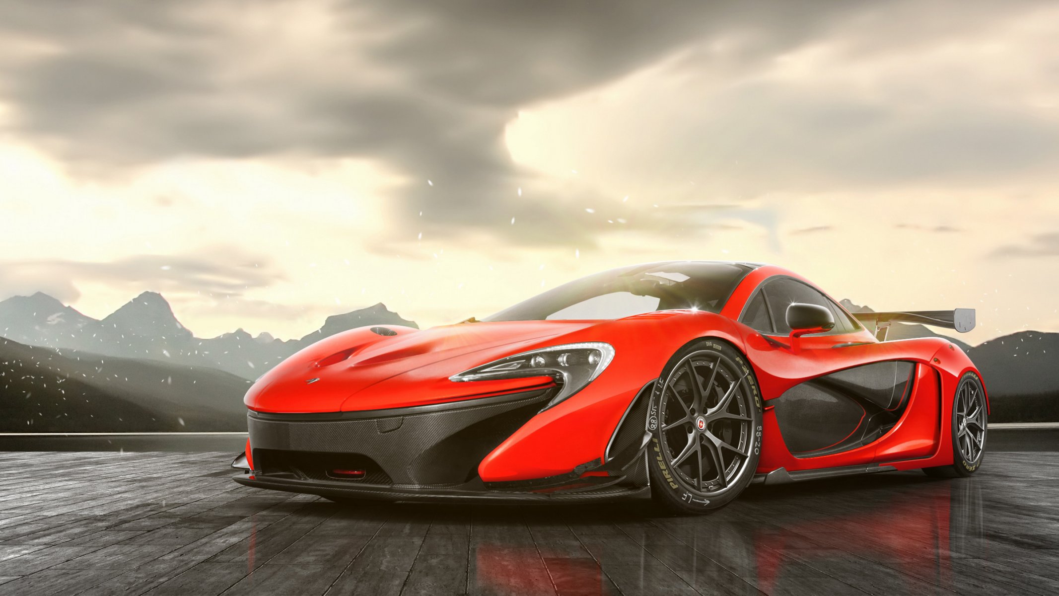 Superdeportivo rojo en el fondo de la puesta de solSuperdeportivo rojo en el fondo de la puesta de sol